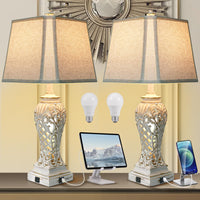 29'' Tall Farmhouse Table Lamps Set Of 2, Boho Table Lamp For Living Room With Usb C+A