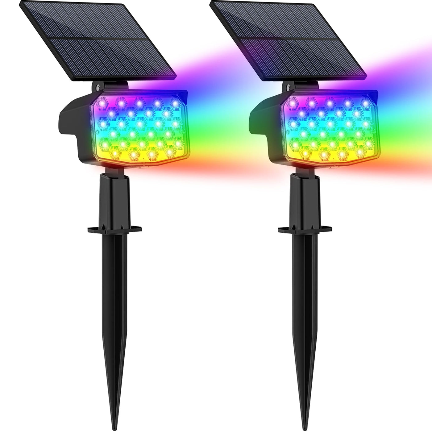 Welalo Solar Color Changing Spot Lights Outdoor, Waterproof Solar Christmas Lights With 9 Modes, Multicolor Rgb Landscape Spotli