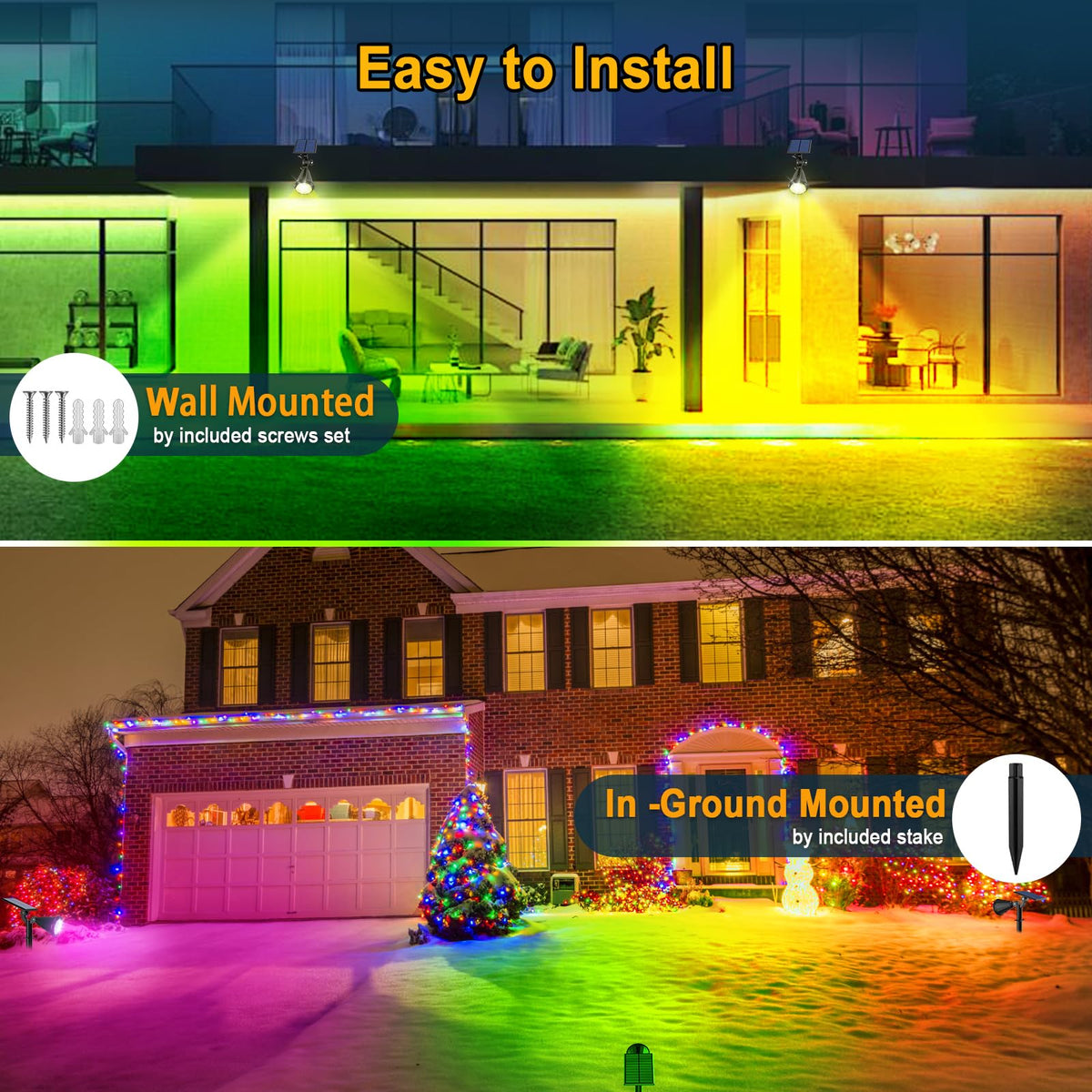 Welalo Solar Spot Lights Outdoor Color Changing, 7 Modes Solar Lights Outdoor Waterproof 180 Adjustable Multicolor Rgb Landscape