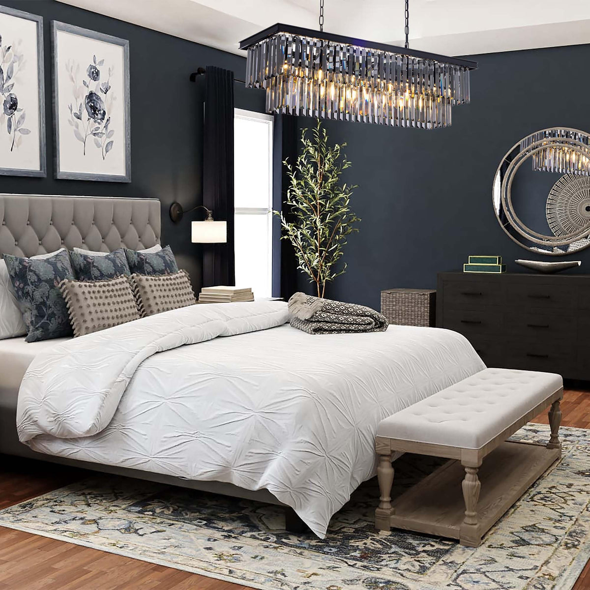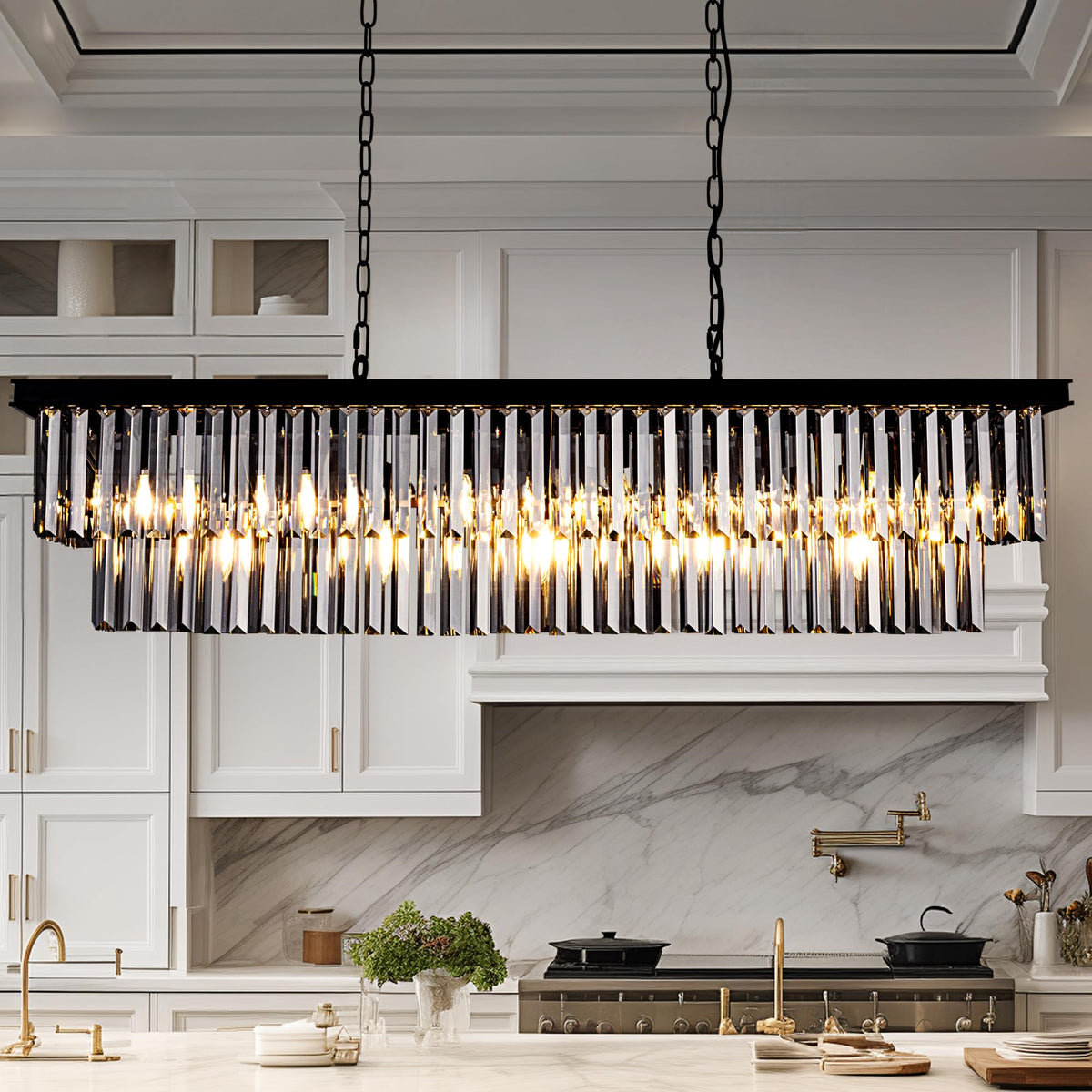 Wellmet 11-Light Smoke Grey Crystal Chandelier 40 Inch, Contemporary Modern Chandeliers Adjustable For Living Room, Dining Room,