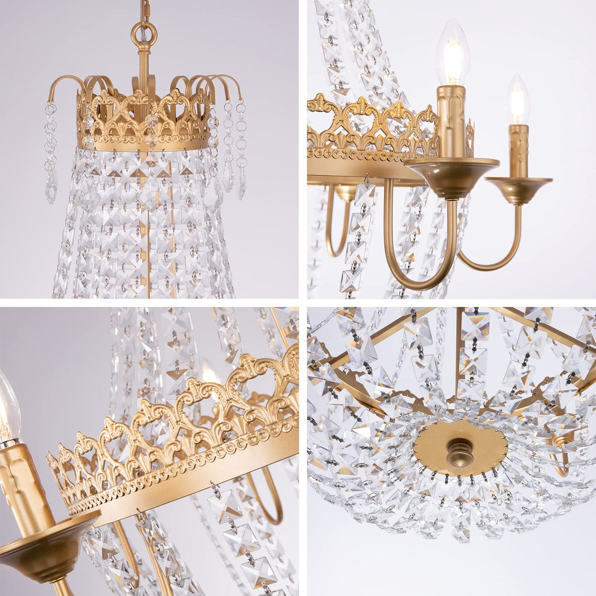 - Inspired Design: The combination of gold finish metal and crystal accents brings a sophisticated touch that complements various furniture styles, enhancing your foyer, dining room, living room, kitchen island, or bedroom.