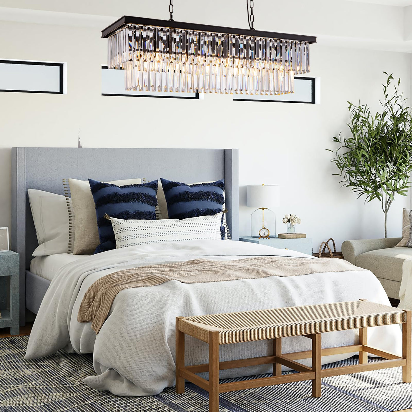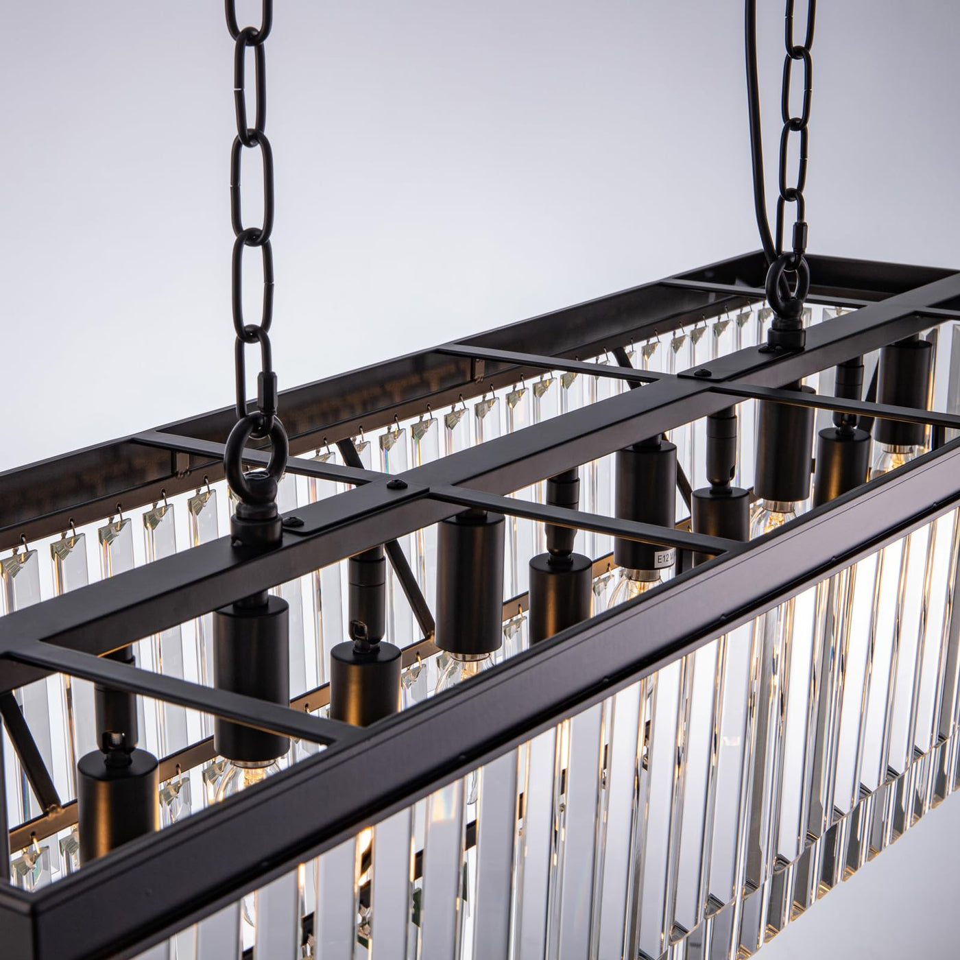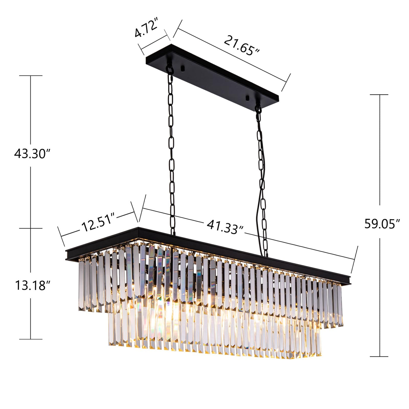 Wellmet Black Crystal Chandelier 40 Inch For Dining Room, 11-Light Modern Linear Chandelier Ceiling Hanging, Farmhouse Chandelie
