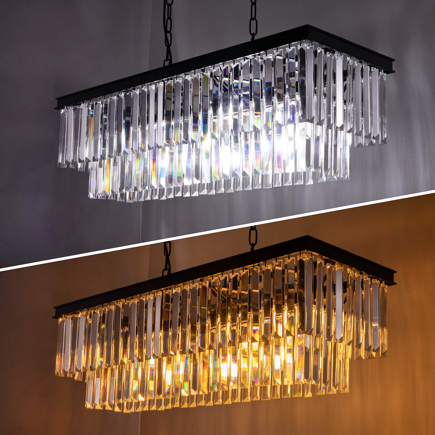 Wellmet Black Crystal Chandelier, 9-Light Modern Farmhouse Chandeliers Dining Room Lighting Fixture, Adjustable Rectangle Hangin