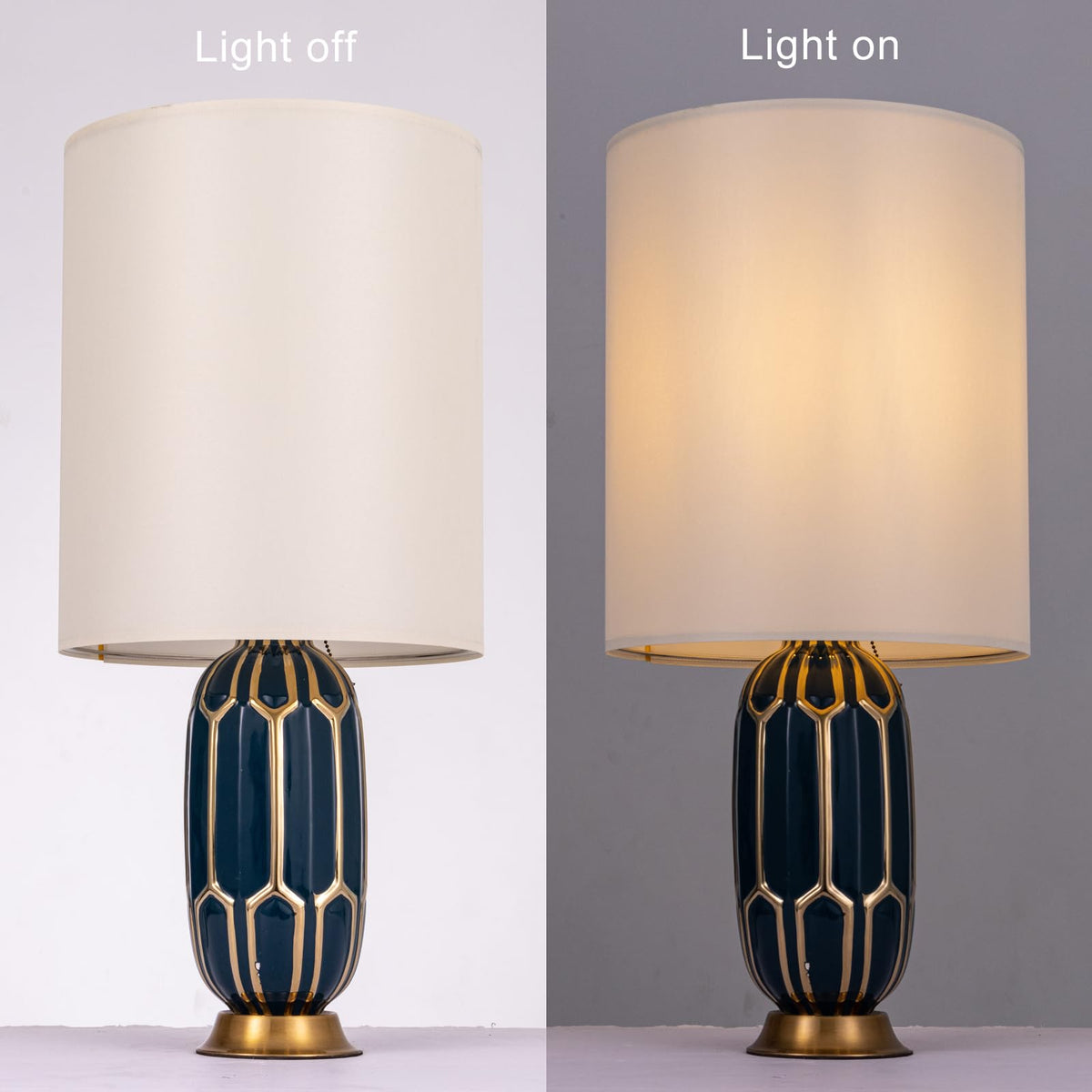 Q: What material is the lampshade made of?A: The lampshade is made from high-quality cotton fabric, which effectively softens and disperses light, creating a warm ambiance in your living space.