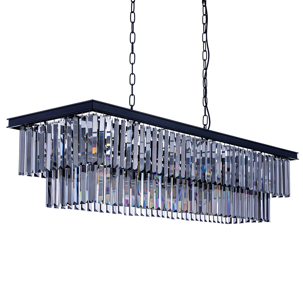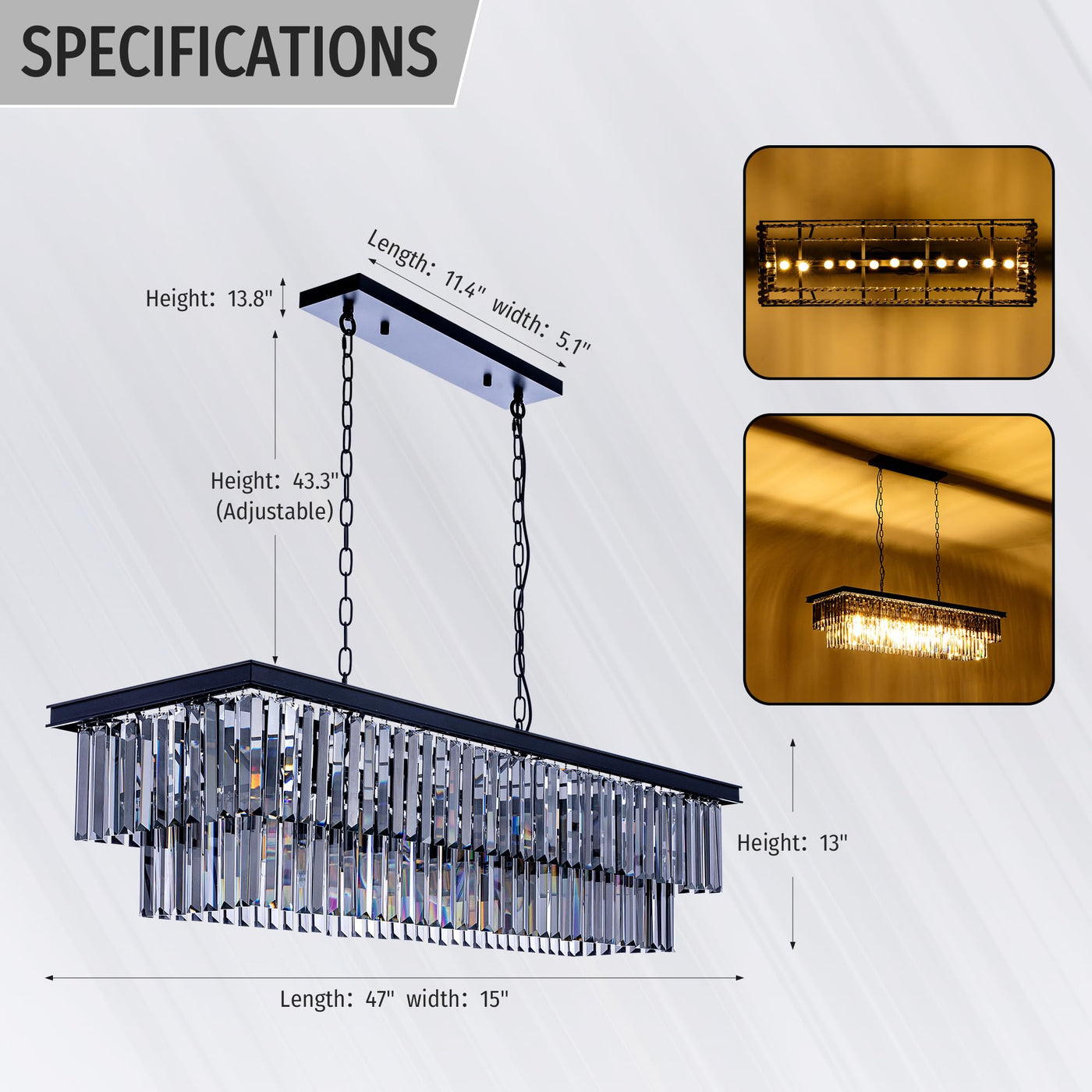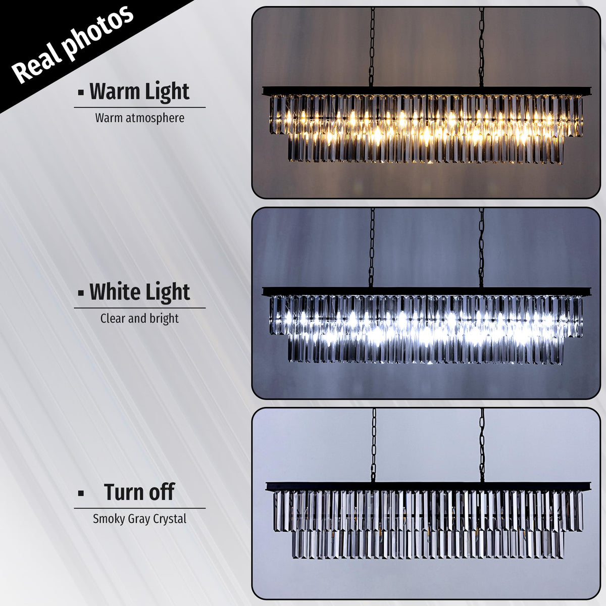 Wellmet Crystal Chandelier 47 Inch, 11-Light Modern Smoke Grey Rectangular Crystal Chandelier Ceiling Hanging, Linear Chandelier