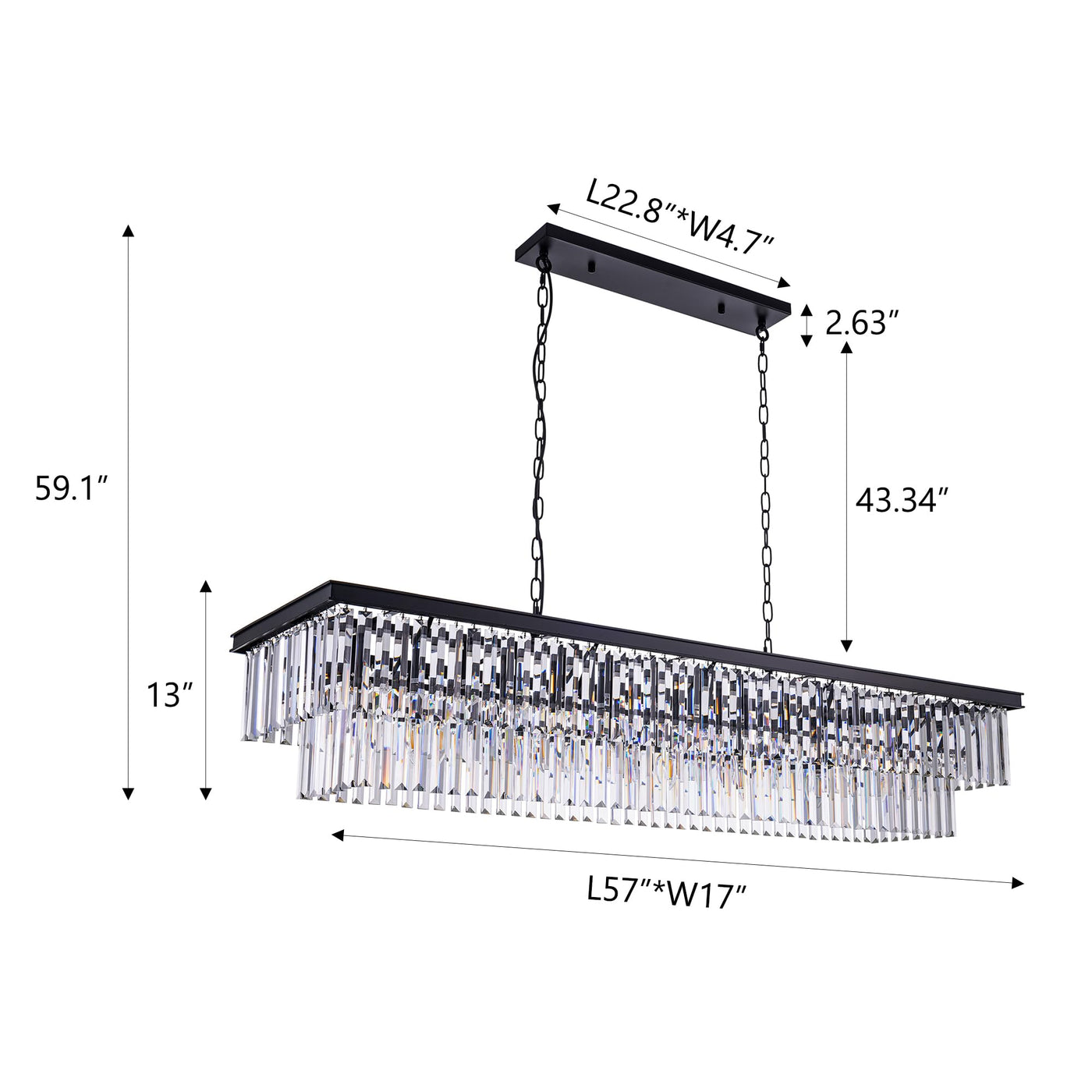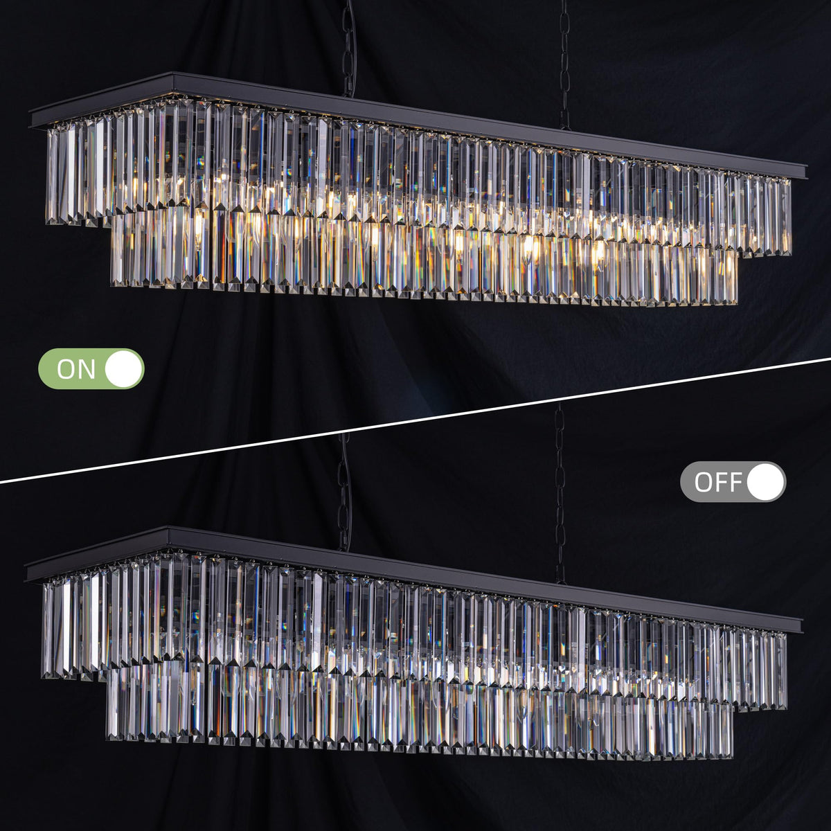 Wellmet Crystal Chandelier, 57 Inch 13-Light Black Chandelier For Dining Room Light Fixture Ceiling Hanging, Modern Rectangular