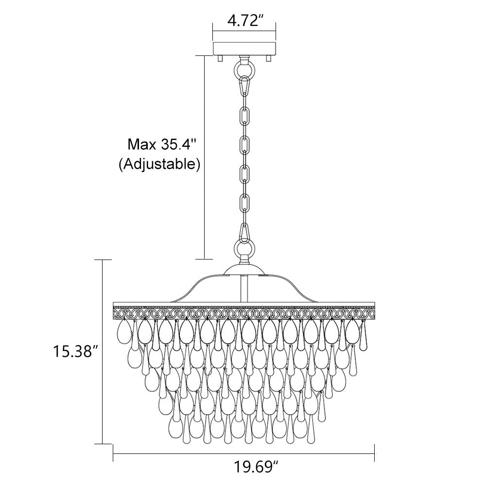 Are you still looking for a Crystal Chandeliers to decorate your Corridor, Balcony, Bedroom, Dining Room, Hallway, Kitchen, Pass-way, Bar??Wellmet Crystal Chandeliers is the Best Choice.?Various sizes of glistening teardrop crystals hang from four different tiers in a dome shape?The round frame is crafted from iron and accented with subtle scrolling engraved details?? Inside the frame are four iron sockets, which each accommodate one 60 W E12/candelabra bulb (not included)??Warnings??Must be Installed By Professional Electrician.?When Installing, cleaning lamps and replacing light bulbs, must cut off power supply.?The surface of the lamp and the electric Wire should be avoid scratching when mounting, the electric insulation gloves must be worn when installing.?Features:Chandelier Size: H 14.76-inch; W 20-inch Chain Size: 35.4 inch (Adjustable)Material: Metal, CrystalBulb Base: E12Installation Type : Chandelier/ Pendant lightingBasic Assembly: RequiredInstruction manual is includedSuitable for: Bed room, Living room, dinning room, kitchen, lobby, hallway,libraries, restaurant, church, cafe, shops, waiting room, hotel, beauty salon, complex buildings, etc