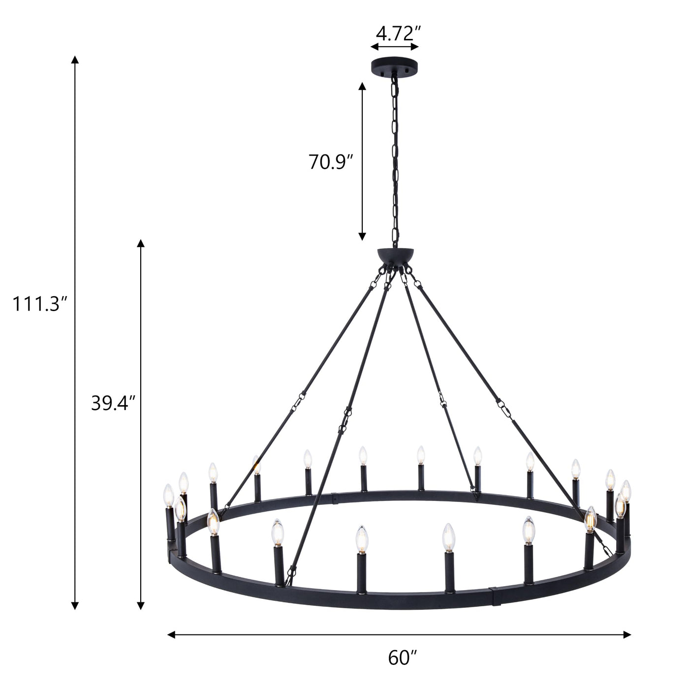 Wellmet Extra Large Black Chandelier Diam 60 inch, 20-Light Wagon Wheel Chandelier, Farmhouse Industrial Country Style Large Rou