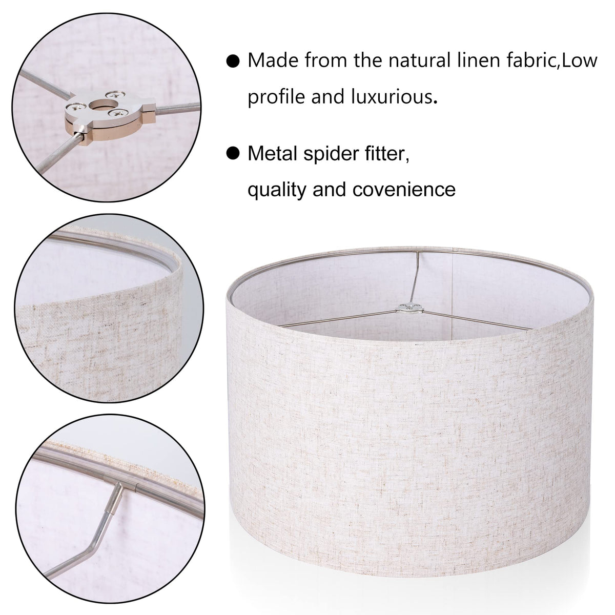 Wellmet Fabric Drum Lampshade, 18X18X12, Linen, Model Ds-Tls006, Classic Modern Style, Spider Fitter For Table & Floor Lamps