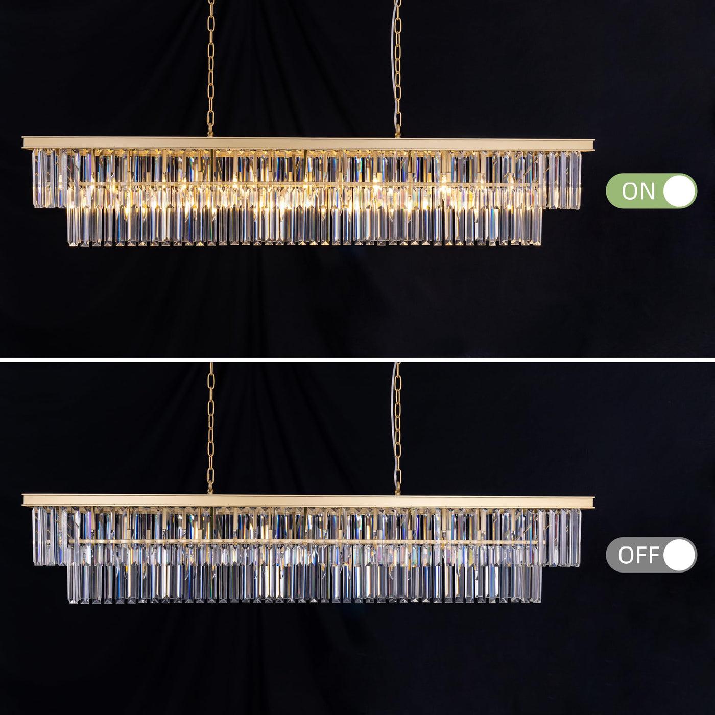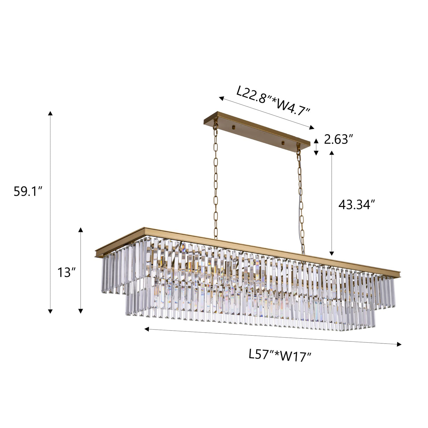 Wellmet Gold Chandelier 57 Inch, 13-Light Modern Rectangular Crystal Chandelier Ceiling Hanging, Linear Chandeliers Light Fixtur