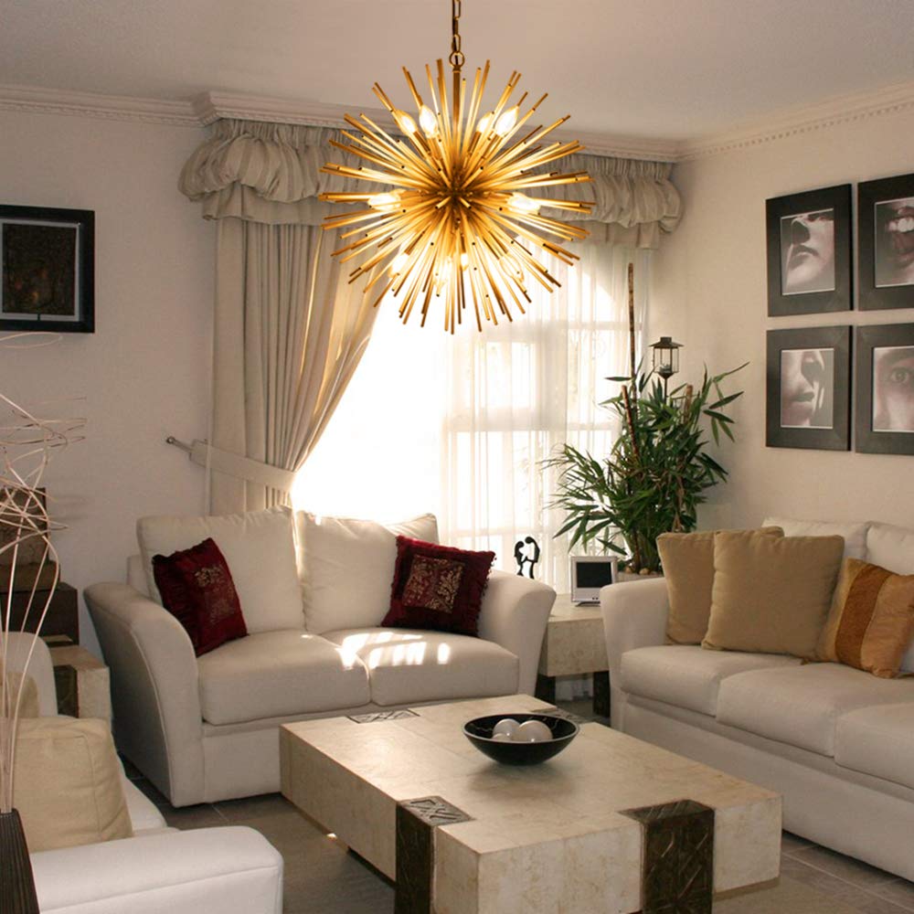 Wellmet Gold Sputnik Chandelier, 12-Light Mid Century Modern Fixture For Foyer & Dining Room