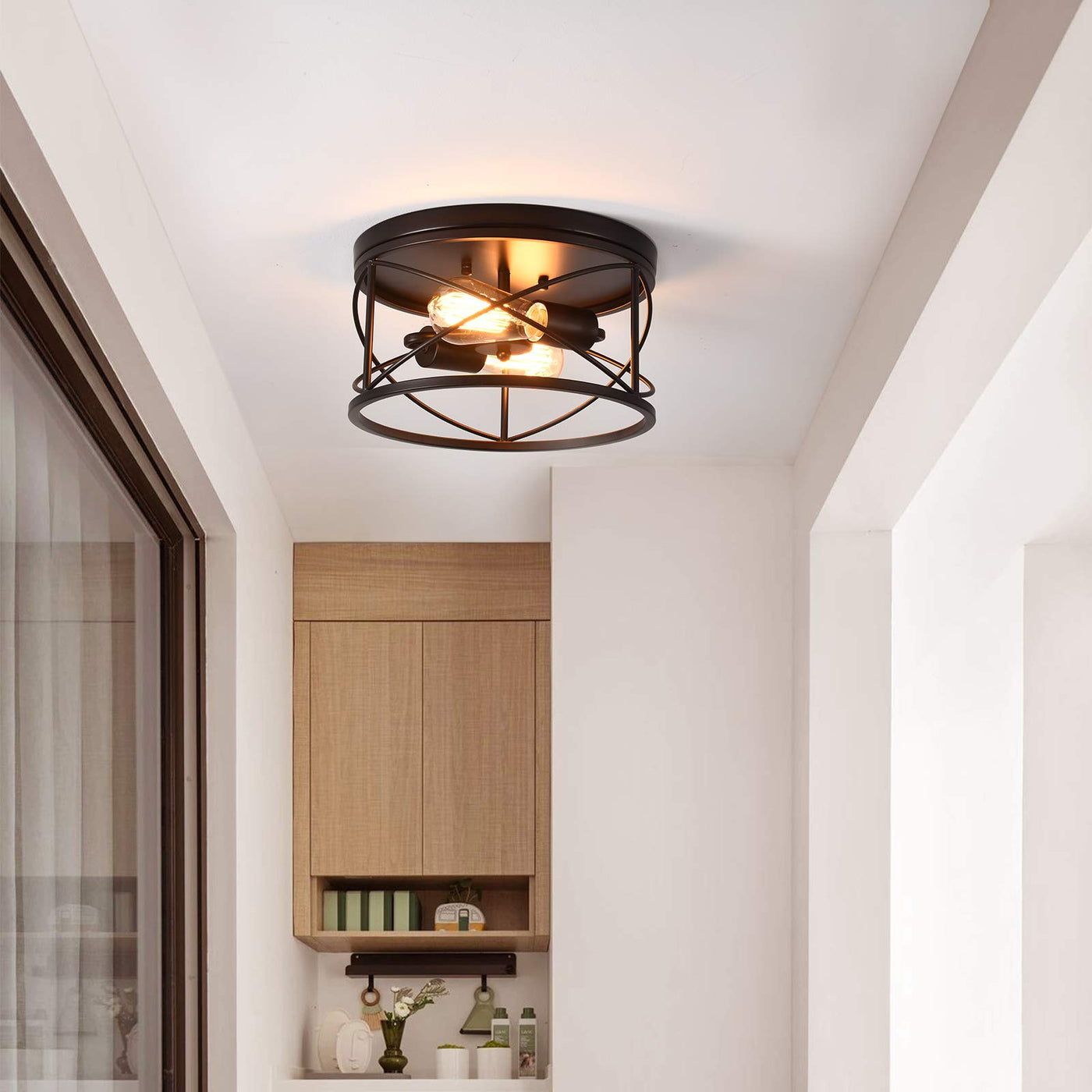 Weltrans 2-Light Flush Mount Ceiling Light Fixture, Industrial Modern Black Ceiling Lamp, Vintage Farmhouse Light Fixture For Ha