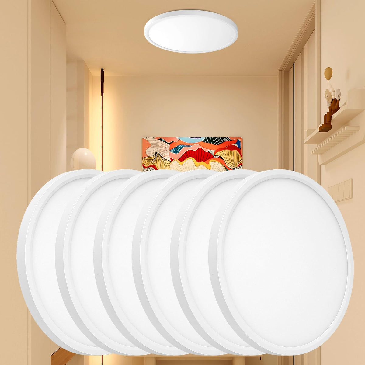 Wembanma 6Pk 12 Inch Led Flush Mount Ceiling Light - 0.67In Thickness Round, 24W 5Cct In One 2700K/3000K/3500K/4000K/5000K Surfa