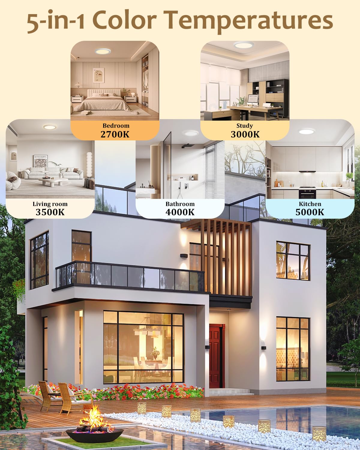 Q: What color temperatures does the Wembanma LED Flush Mount Ceiling Light offer?A: The Wembanma LED Flush Mount Ceiling Light offers 5 selectable color temperatures: 2700K, 3000K, 3500K, 4000K, and 5000K. You can easily adjust the light to your preferred setting using the manual switch inside the fixture.