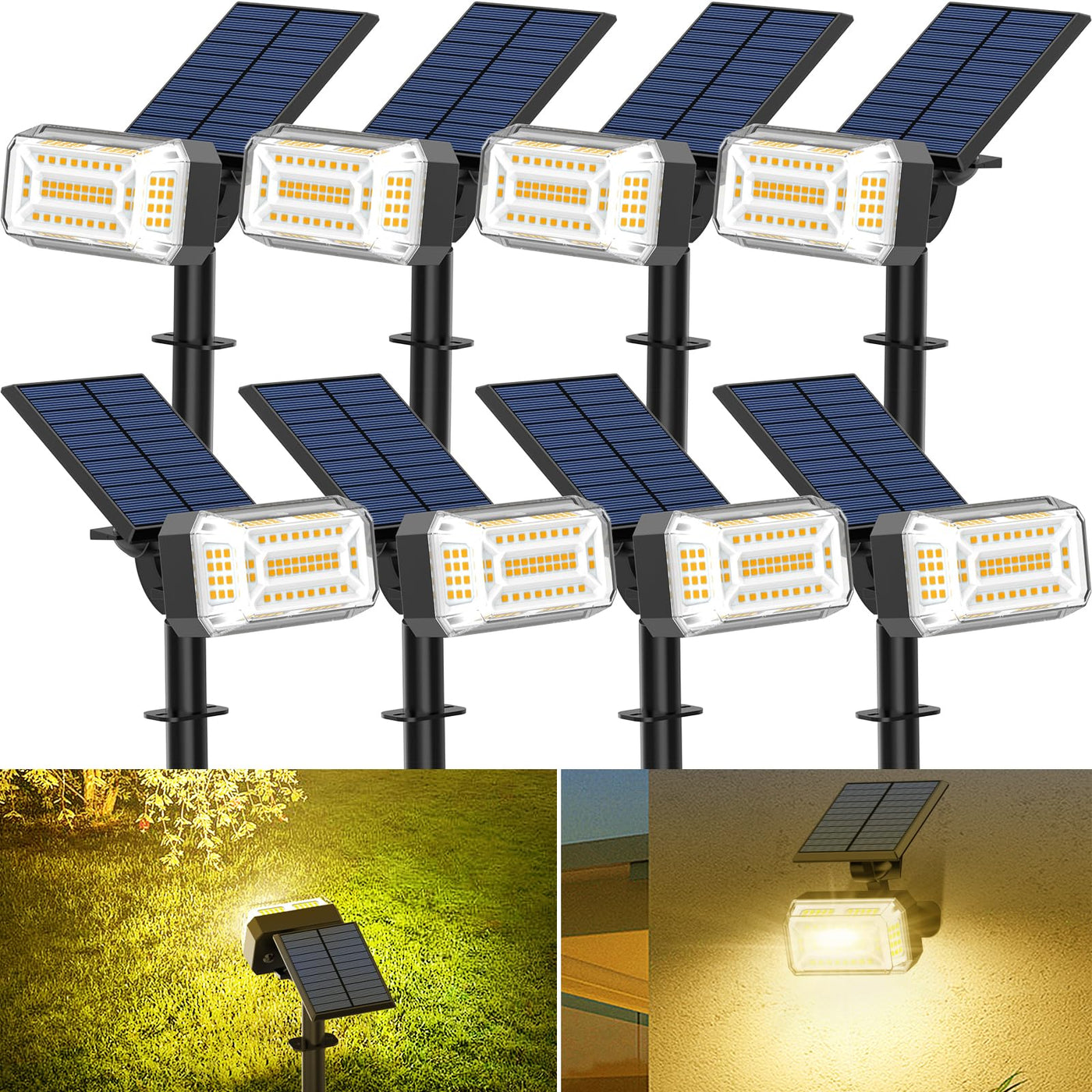 WENATY 102 LED Solar Spot Lights Outdoor Waterproof IP65, Adjustable Landscape Spotlights, [8 Pack/4 Modes] Auto On/Off Solar Po