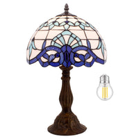 Werfactory Navy Blue Baroque Tiffany Table Lamp - 12X12X18 Inches Stained Glass Reading Light