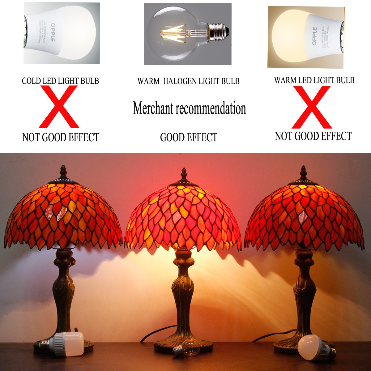 - **Quality Lighting**: This lamp comes with a recommended E26 2700K G45 LED bulb (1PCS included), providing warm white light that accentuates the stained glass colors. For the best visual impact, a higher wattage bulb will amplify the vibrancy of the lamp.