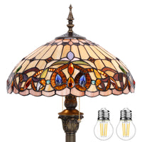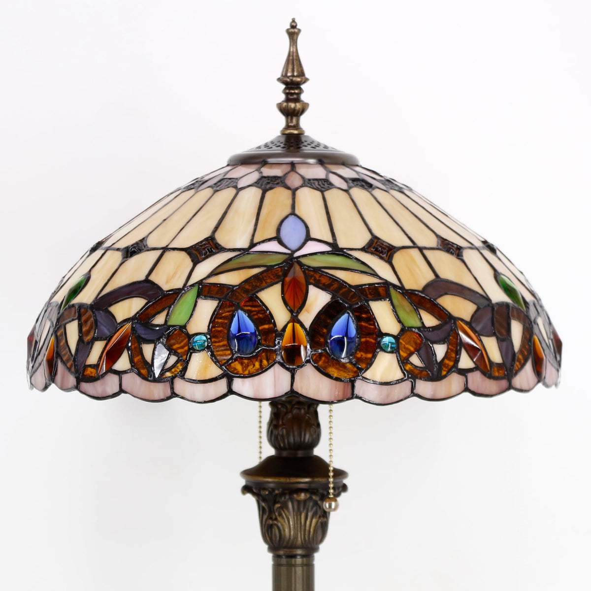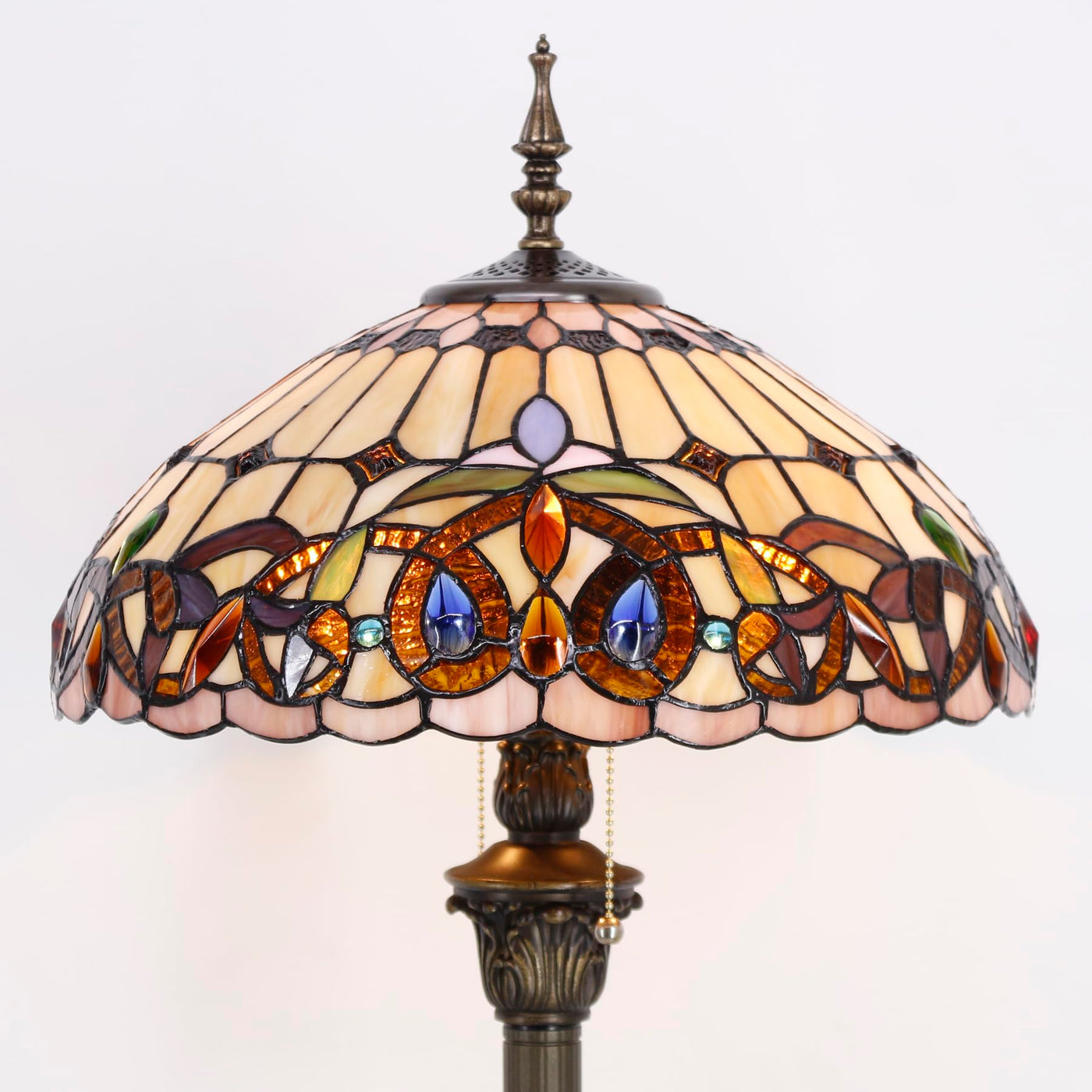 Werfactory Tiffany Floor Lamp Serenity Victorian Stained Glass Standing Reading Light 16X16X64 Inches Antique Pole Corner Lamp D