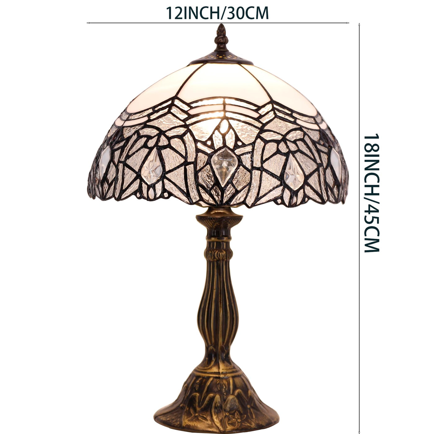 Werfactory Tiffany Lamp White Bent Stained Glass Bedside Table Lamp Desk Reading Light 12X12X18 Inches Decor Bedroom Living Room
