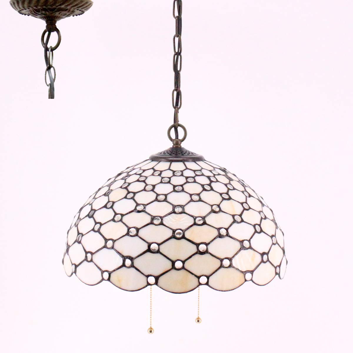 - **Elegant Design**: The lamp base is made of durable metal with an antique bronze finish, providing a classic touch. The overall height, complemented by a 40-inch hanging chain, makes it suitable for various ceiling heights.