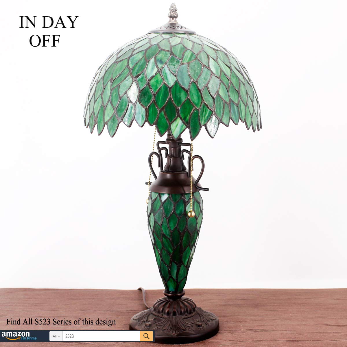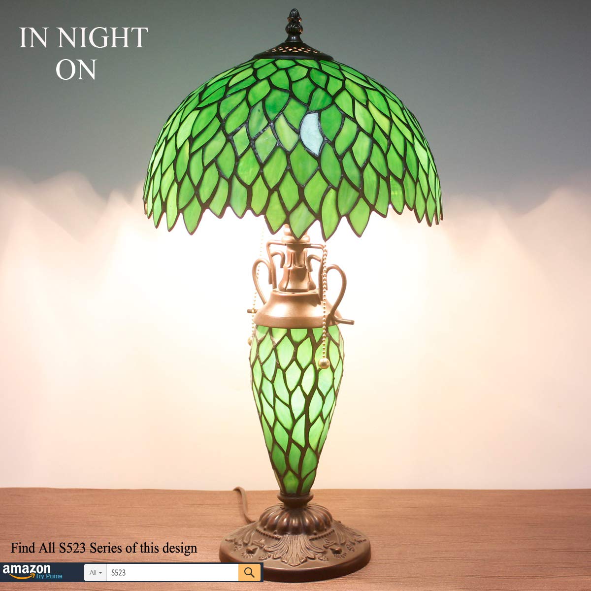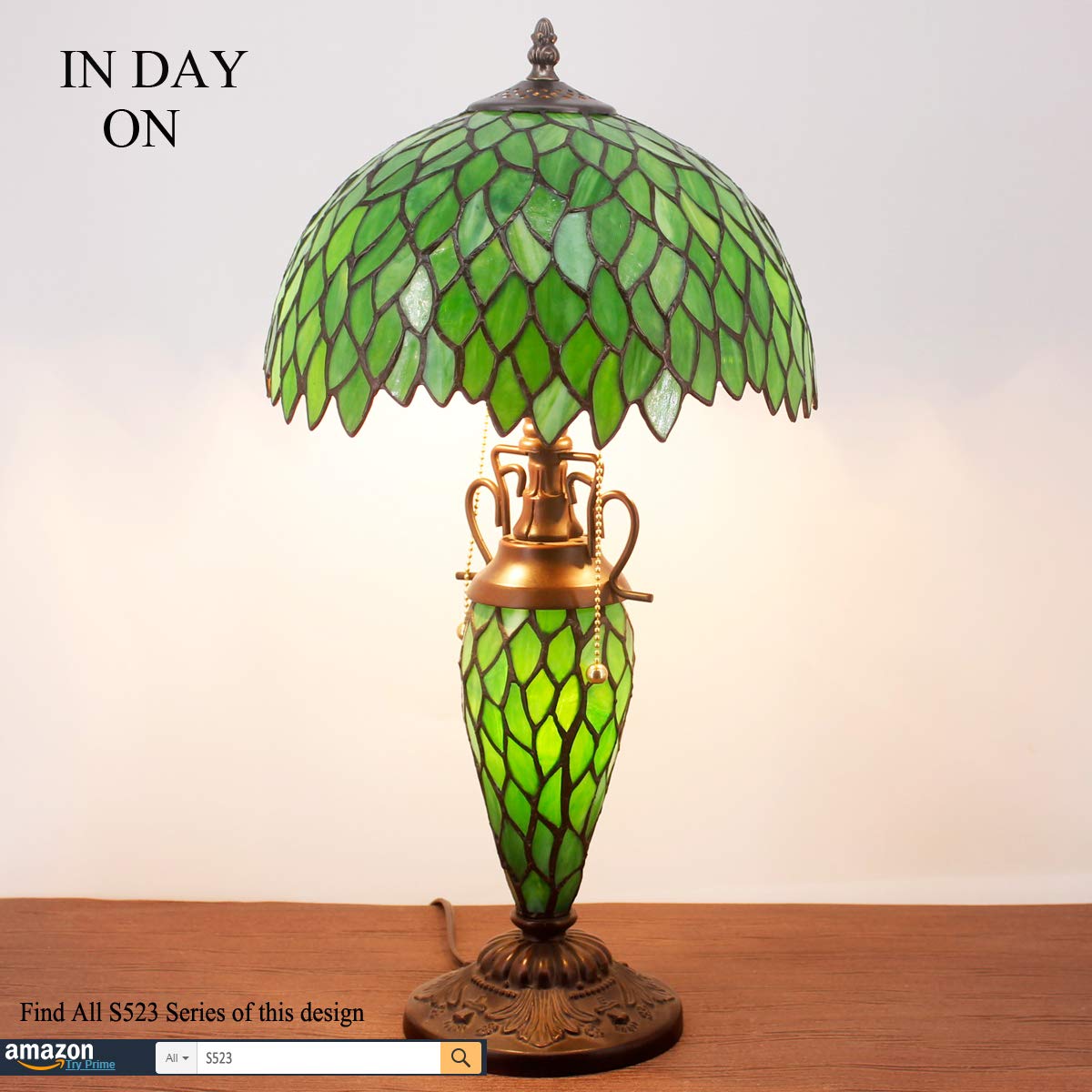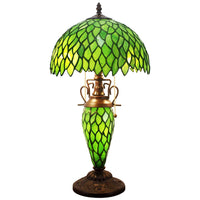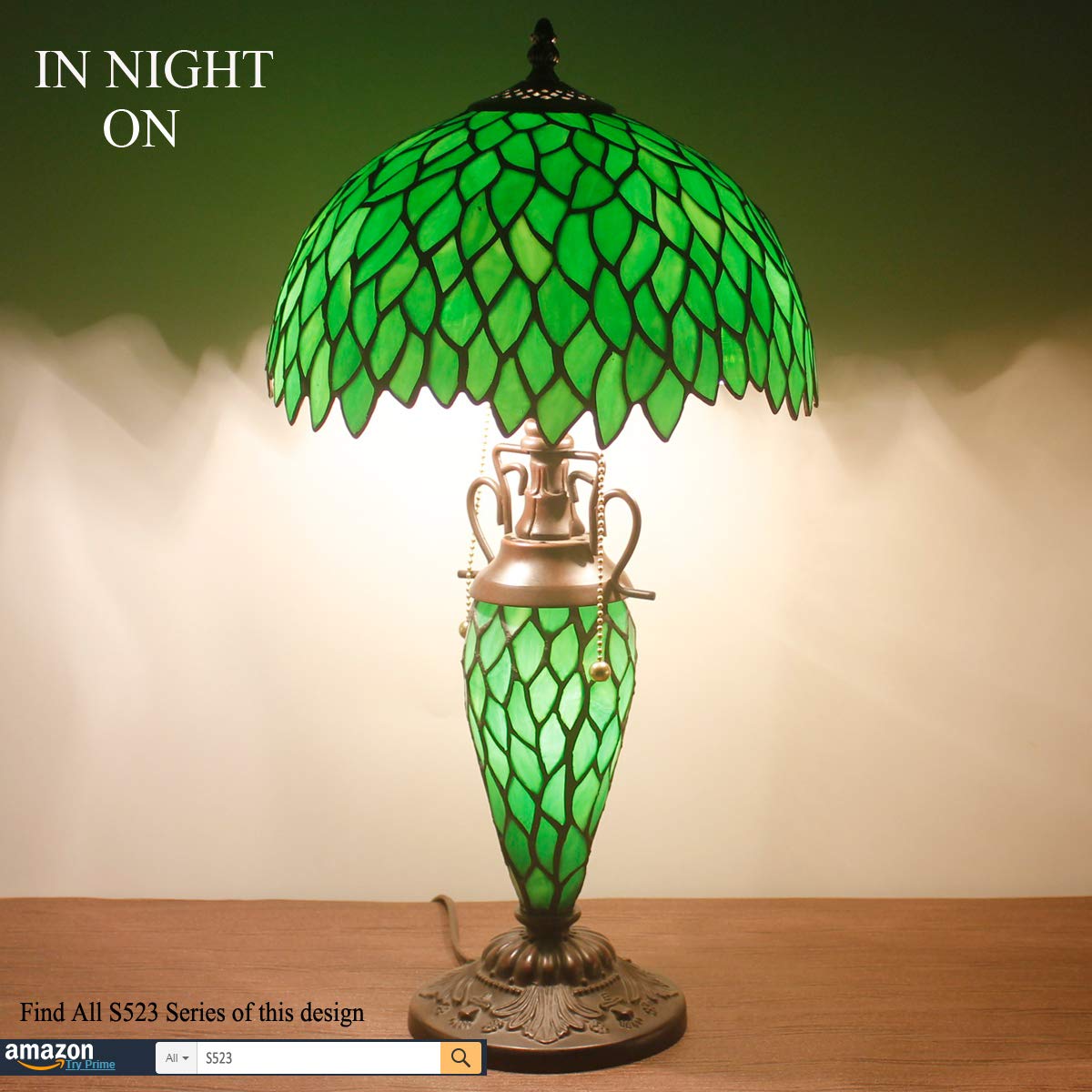 - **Stunning Stained Glass Design**: Crafted with care, the lampshade features a beautiful Green Wisteria color scheme, showcasing the intricate patterns of stained glass that create a vibrant display when illuminated.