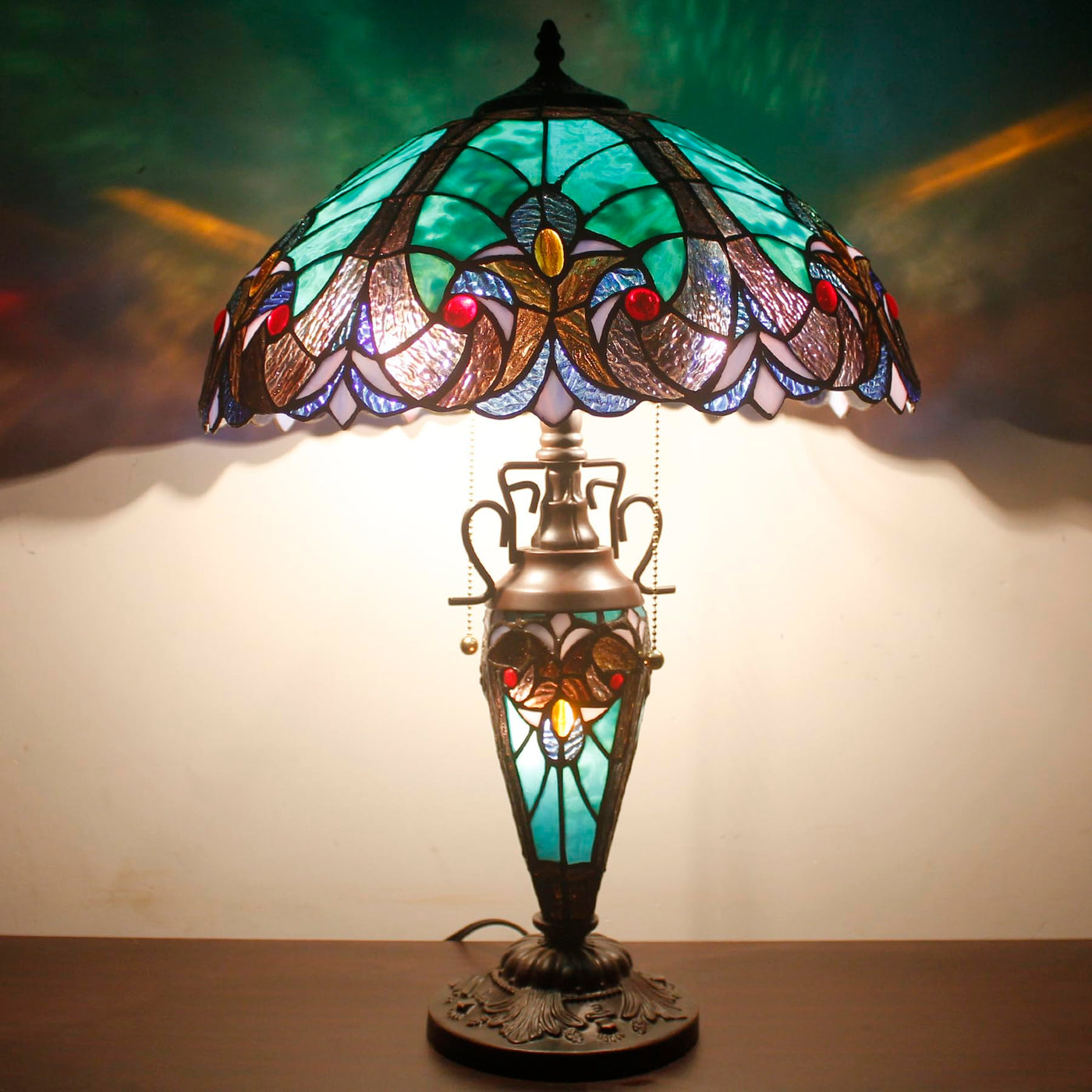 Werfactory Tiffany Style Table Lamp Green Stained Glass Liaison Mother-Daughter Vase Lamp 16X16X24 Inches Desk Reading Light Dec