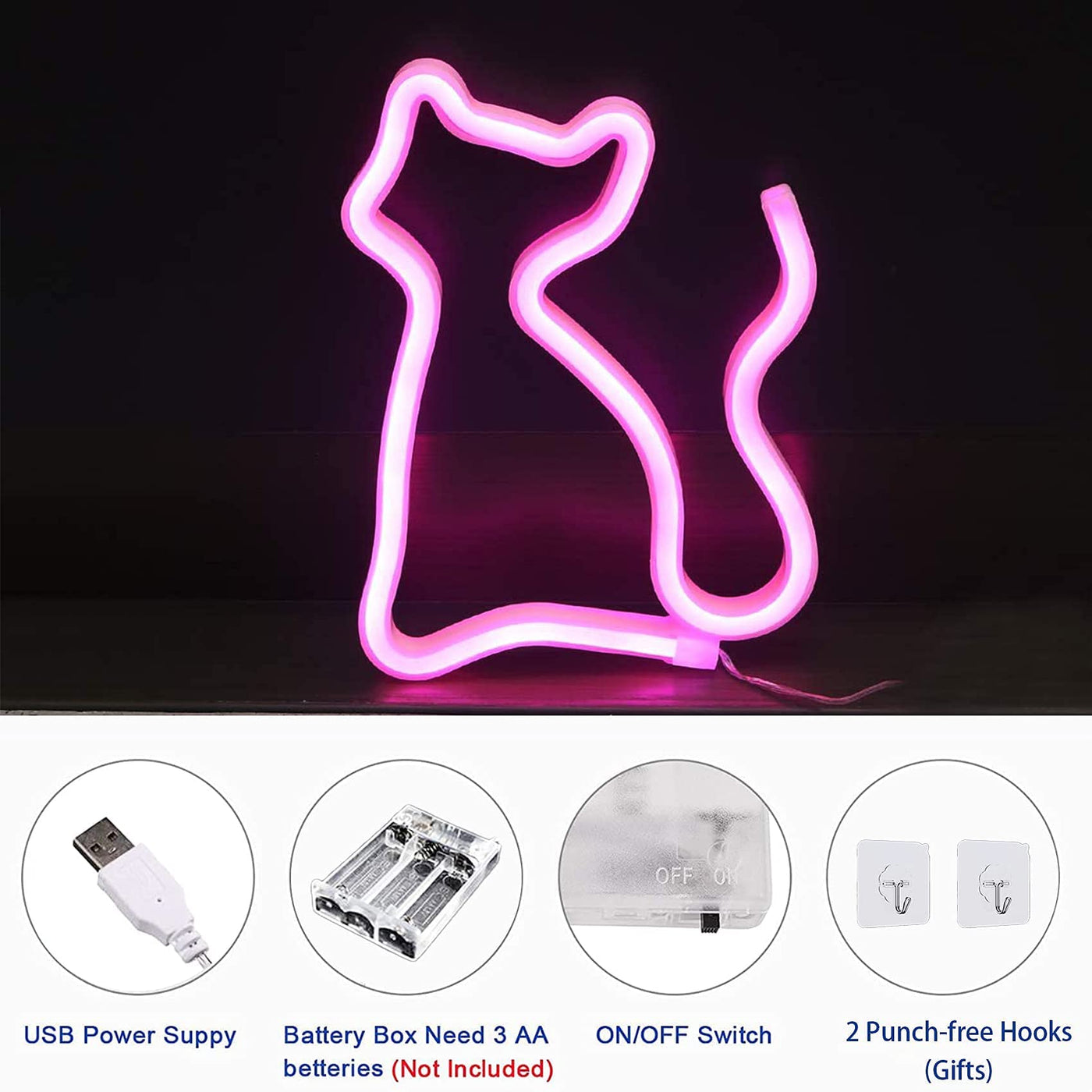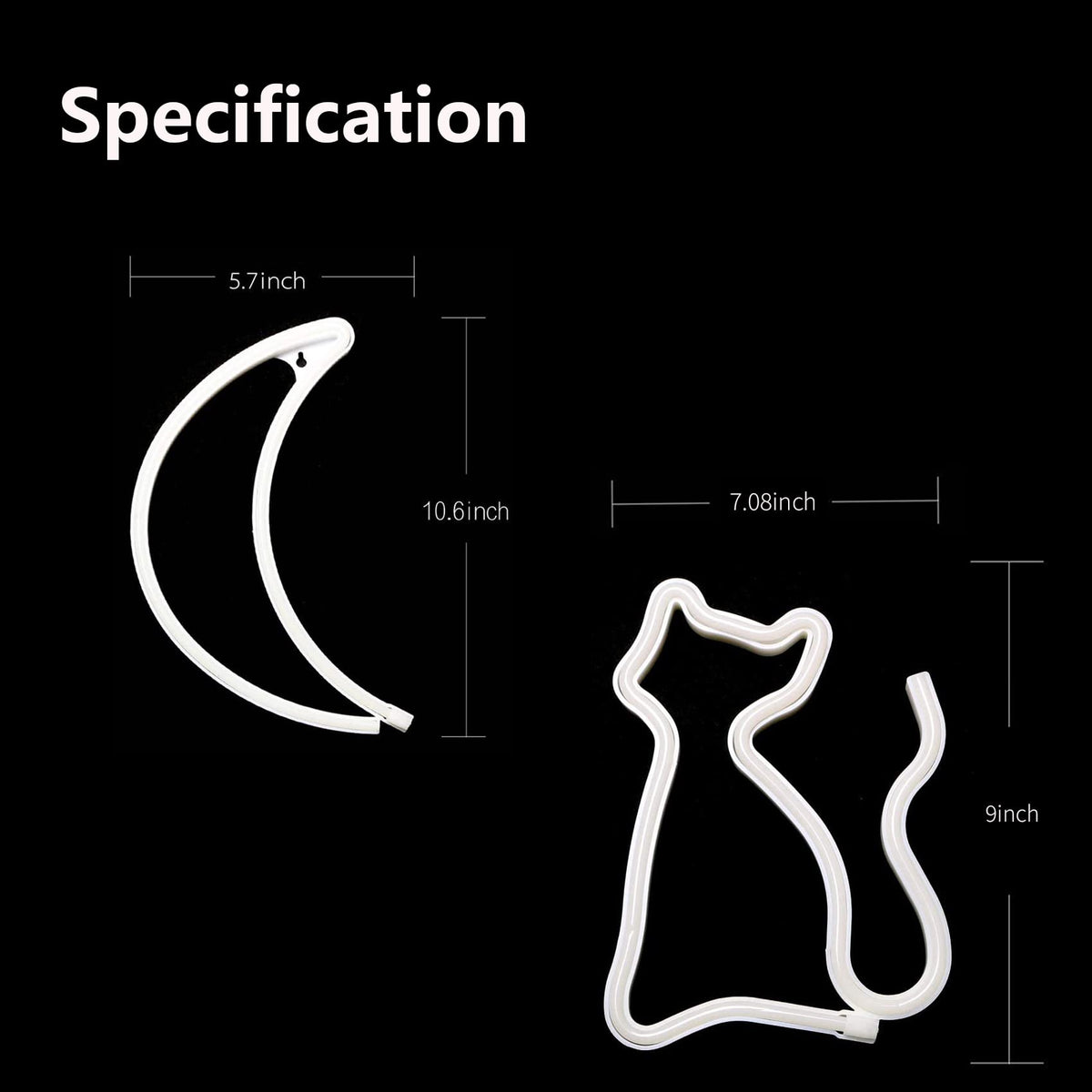 Werfeito Cat And Moon Neon Sign - 2 Pack Led Wall Decor, Usb/Battery Operated For Kids Room