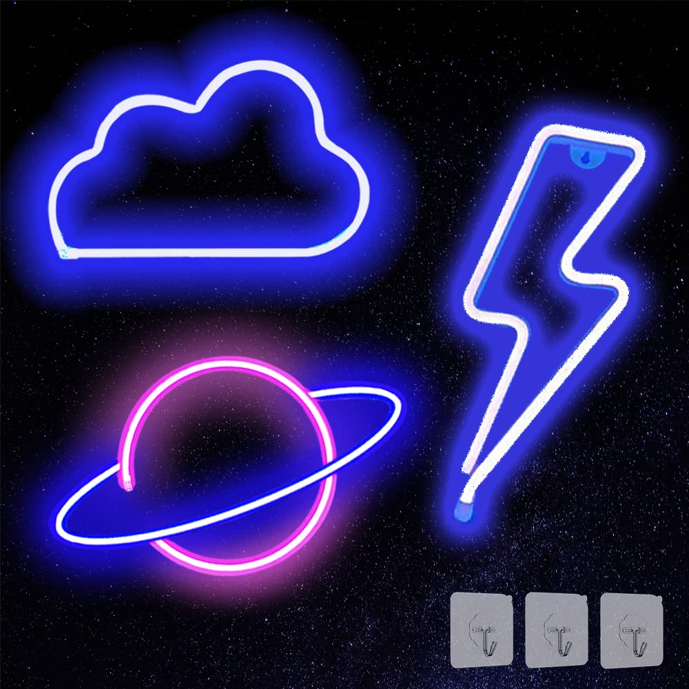 Werfeito Neon Signs - 2 Pack Planet & Cloud Led Lights For Kids Room, Usb/Battery Operated Decor