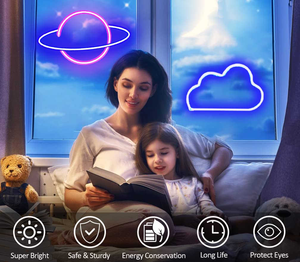 - Perfect for Kids: The LED neon cloud and planet designs inspire imagination for children while creating a warm and inviting atmosphere for family gatherings.