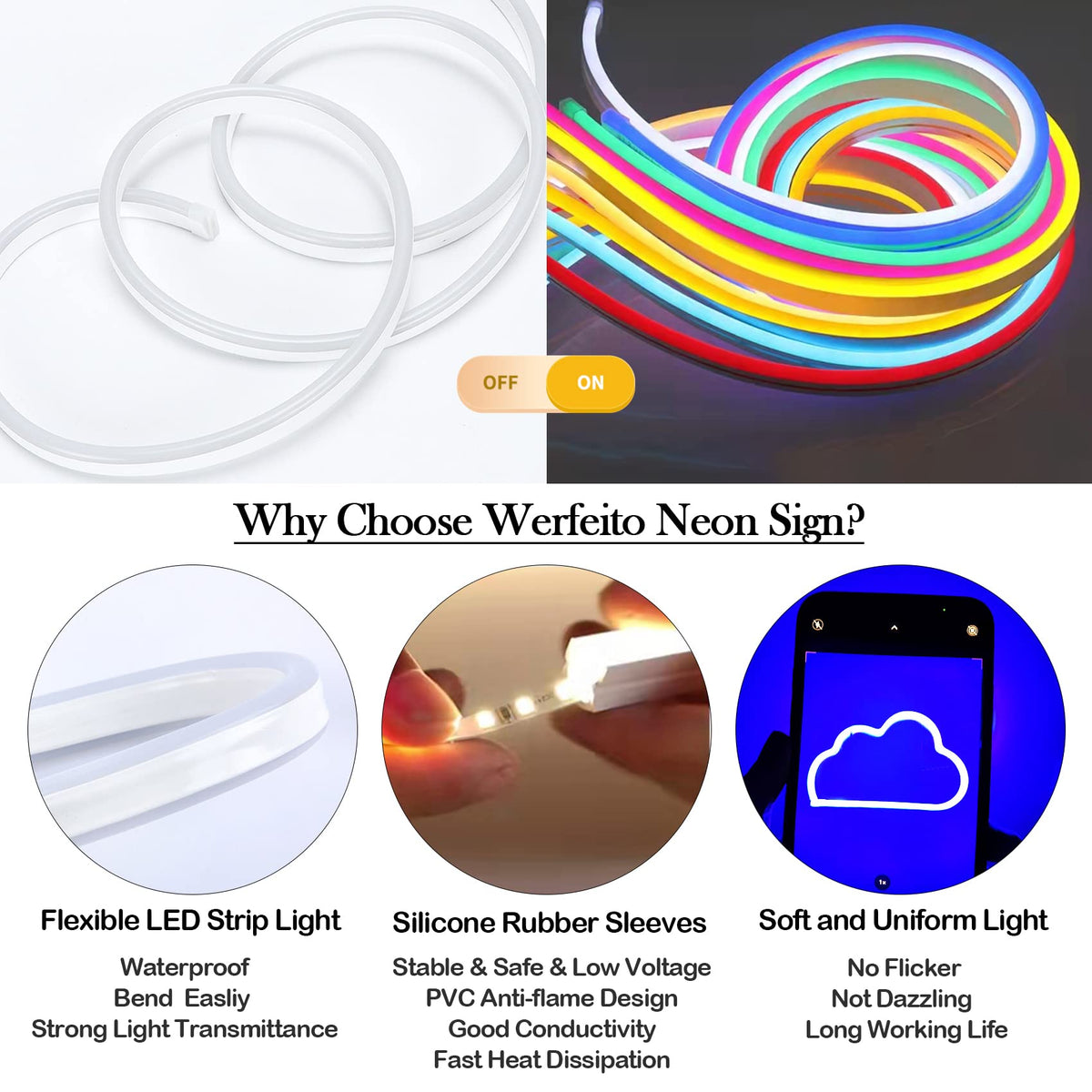 Q: Are the Werfeito Neon Signs safe for children?A: Yes, the Werfeito Neon Signs are made from environmentally friendly silicone material, emit low heat, and have no risk of glass breakage, making them safe for children's rooms.