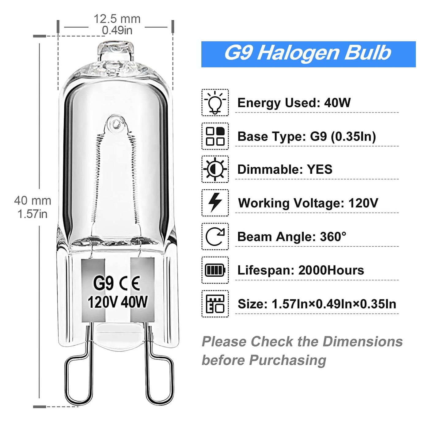 Durability: Each pack includes 12 G9 halogen bulbs, ensuring you always have a replacement on hand.