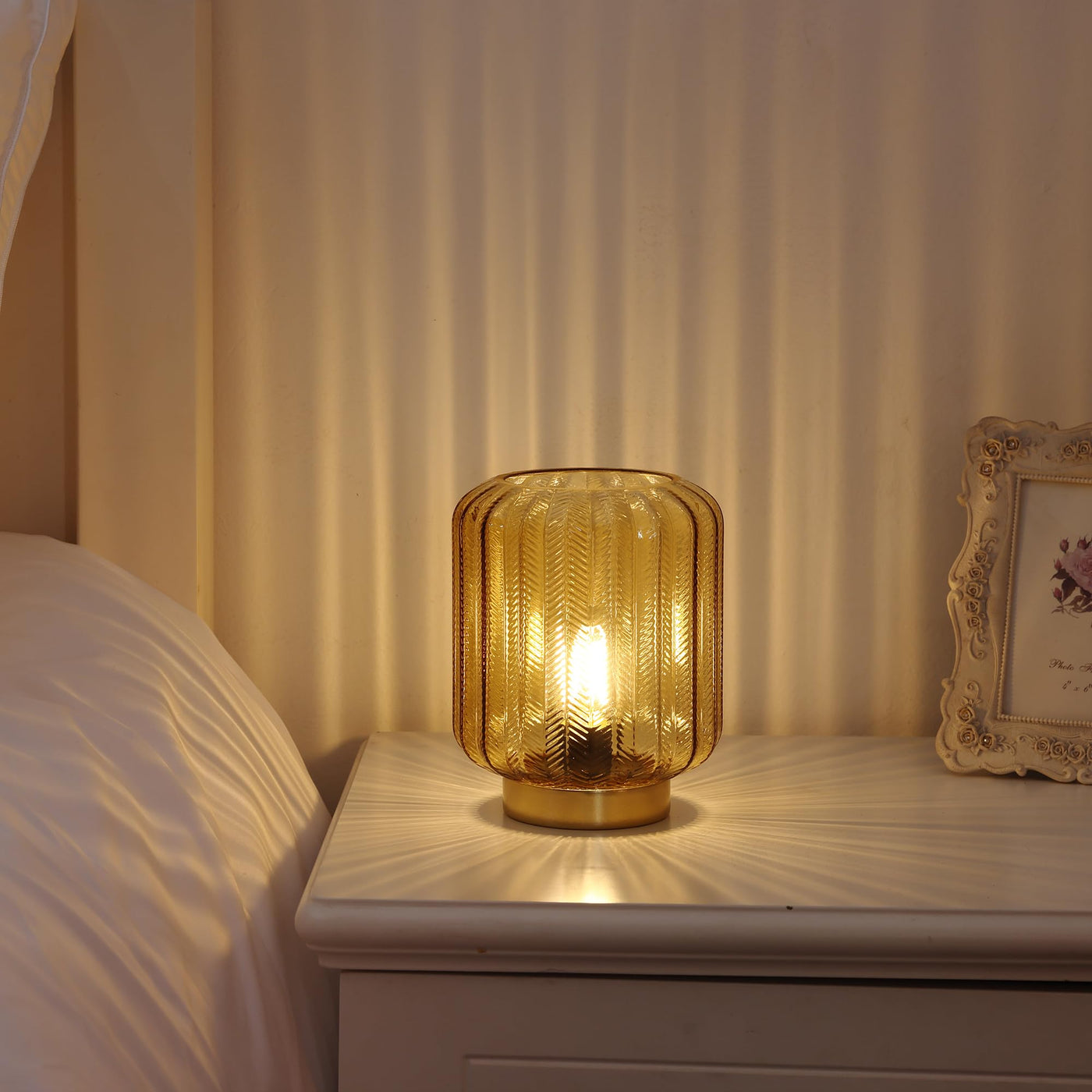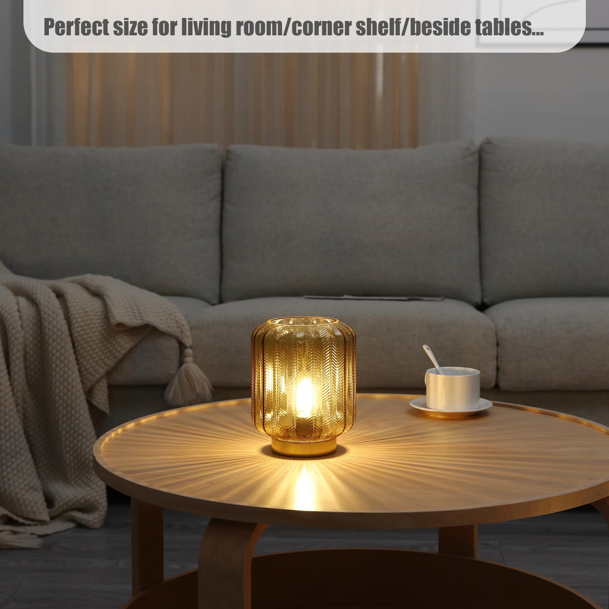 Wesjo Battery Operated Lamp, Modern Table Lamp Cordless Bedside Lamps, Glass Battery Powered Lamp With Led Bulb Decorative Battery Operated Lamps For Living Room Bedroom Desk Home (Gold)