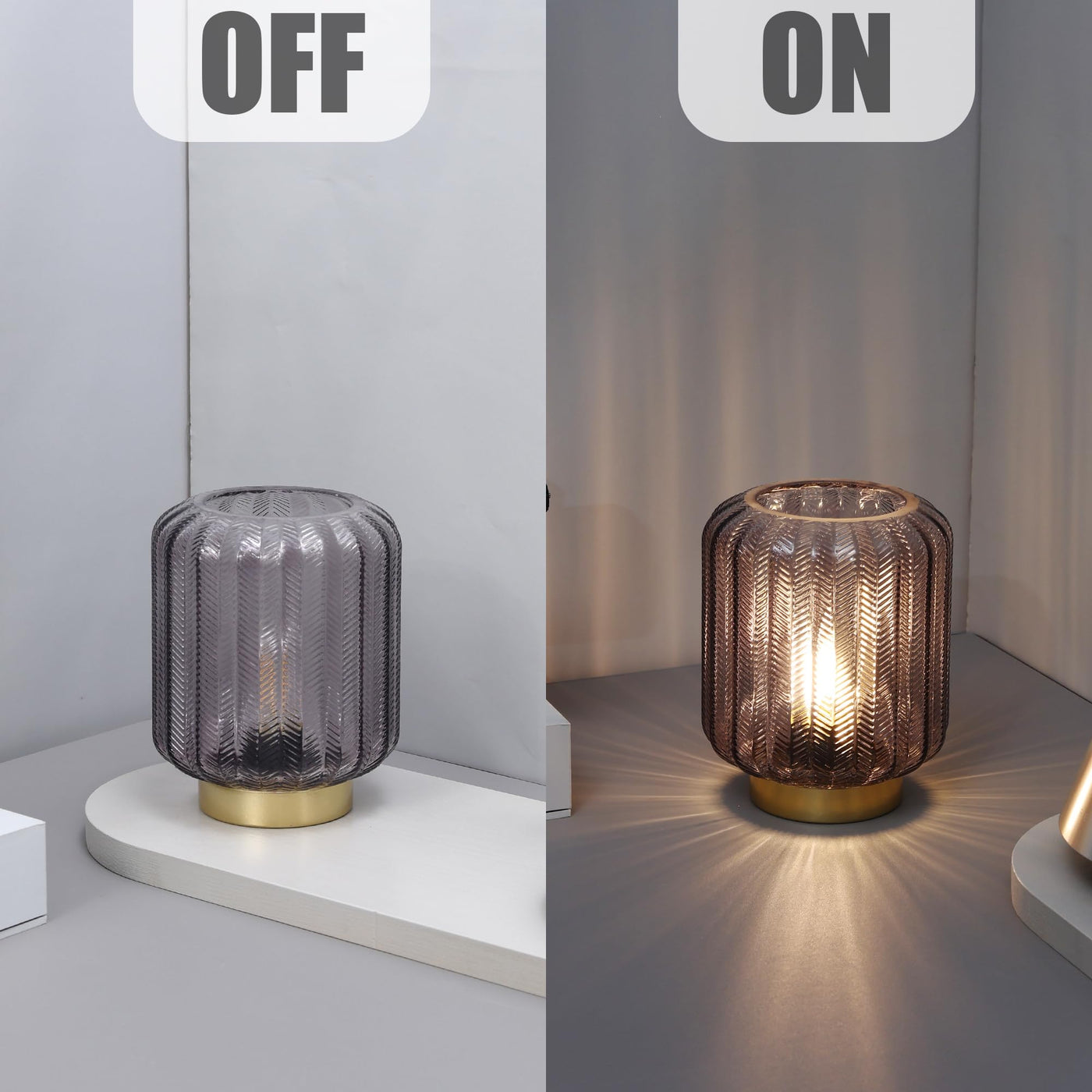 Wesjo Battery Operated Lamp, Modern Table Lamp Cordless Bedside Lamps, Glass Battery Powered Lamp With Led Bulb Decorative Battery Operated Lamps For Living Room Bedroom Desk Home (Grey)