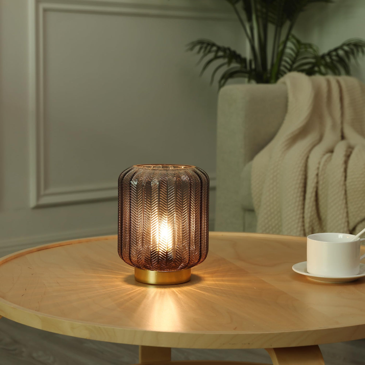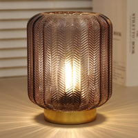 WESJO Battery Operated Lamp, Modern Table Lamp Cordless Bedside Lamps, Glass Battery Powered Lamp with LED Bulb Decorative Battery Operated Lamps for Living Room Bedroom Desk Home