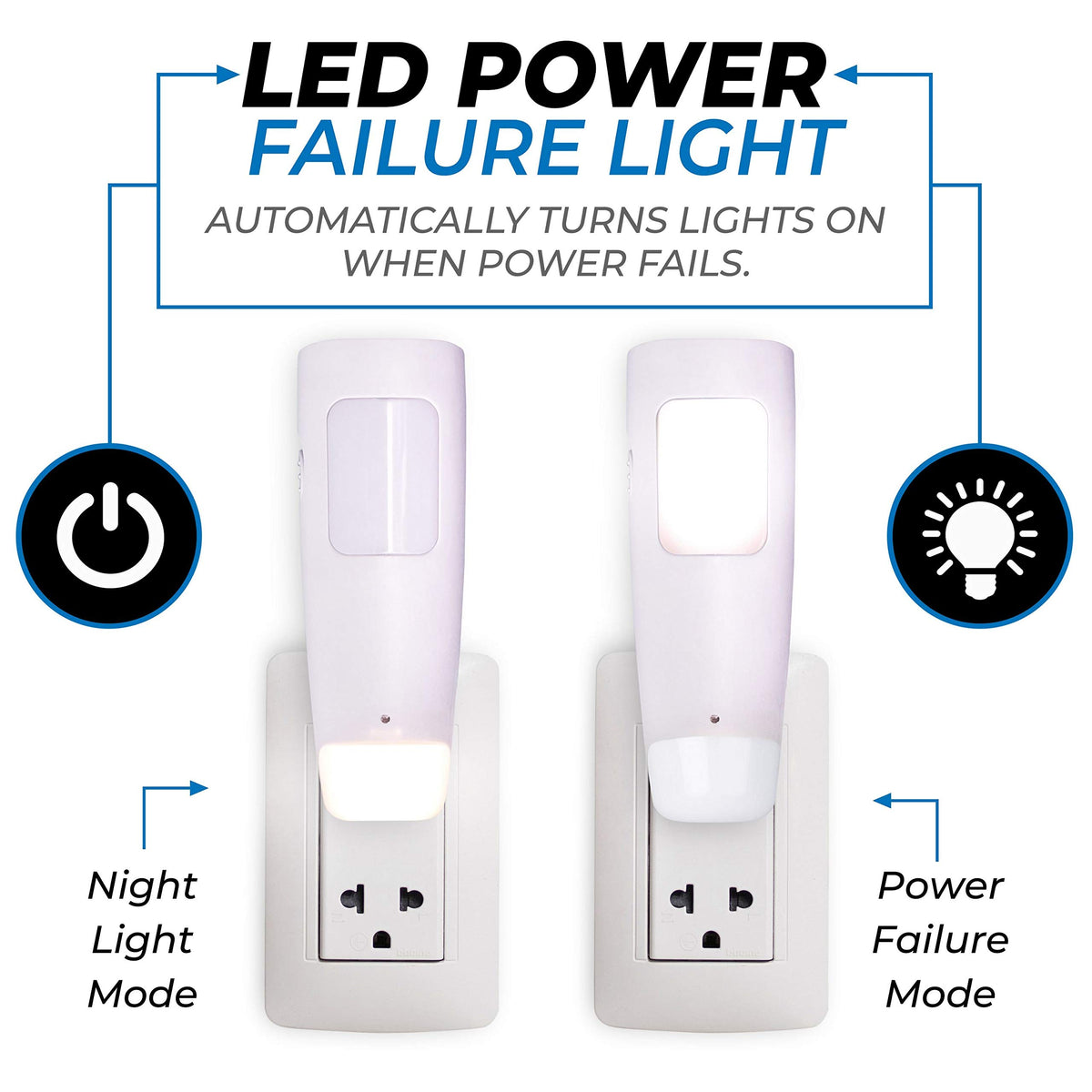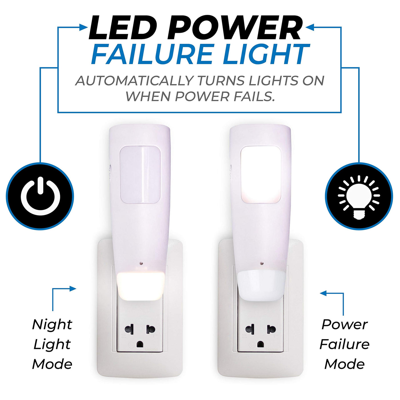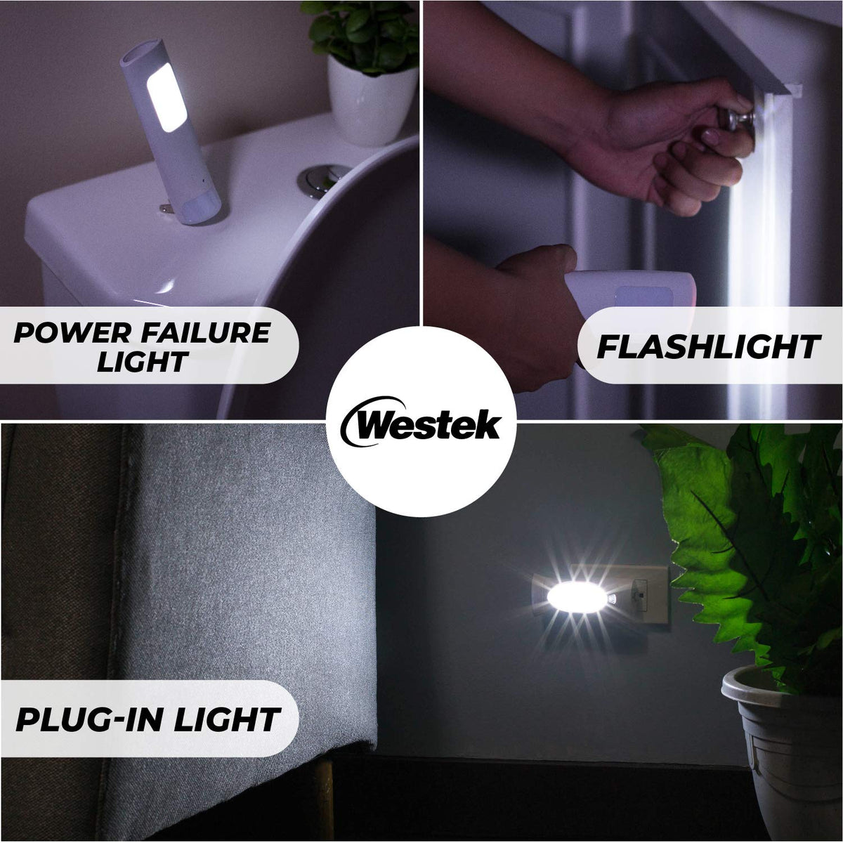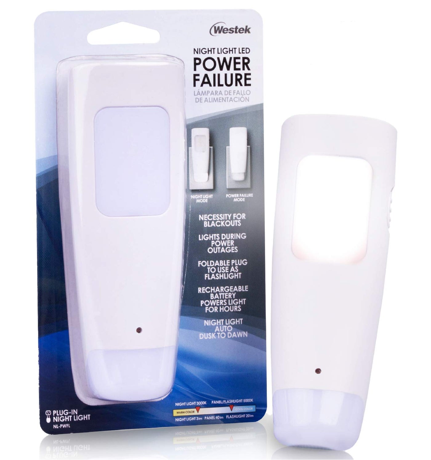 Westek Power Failure Led Night Light Functions In Three Different Modes. In Ready Mode, It Is An Automatic Dusk To Dawn Night Light That Casts A Warm, Relaxing, Soft Glow. In A Power Outage, The Rechargeable Batteries Power The Front Panel Light With A Bright 40 Lumens Of Light To Help Find Your Way Around In The Dark. When It Is Removed From The Outlet And The Plug Is Folded In, It Becomes A Portable, Bright 20 Lumens Flashlight. This Is The Perfect Solution During Floods, Blizzards, Hurricanes, Thunderstorms, Ice Storms, Black Outs, Tornadoes And More.