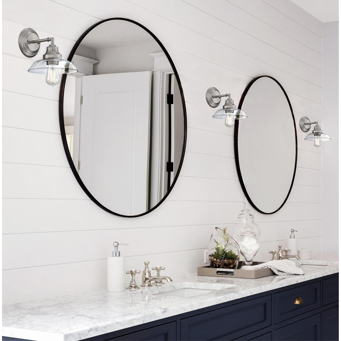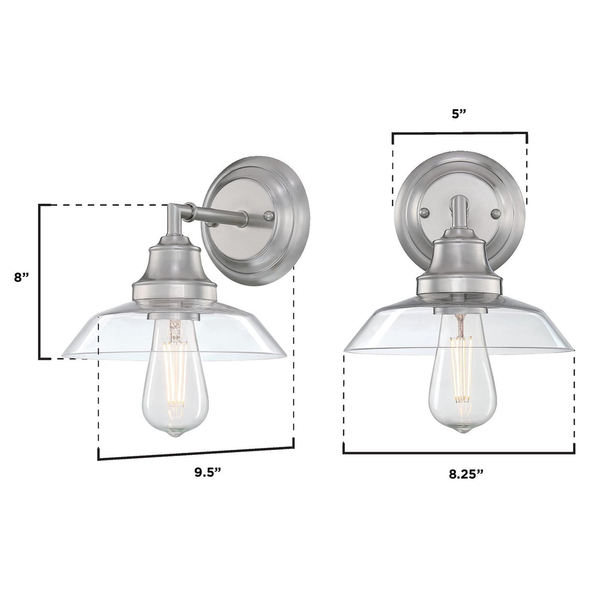 The Westinghouse Iron Hill one-light wall sconce adds character to any decor, from modern to farmhouse. A refined brushed nickel finish with a hand-blown, clear glass shade brings vintage style and emits bright illumination. This wall light is the perfect accent in the bathroom, by a mirror, or in a bedroom. Create a cohesive look in your home with matching fixtures from the Iron Hill lighting collection. Westinghouse is a trusted, global brand. Westinghouse knows lighting and offers products with exceptional quality, reliability, and functionality. Product reference number 61291.