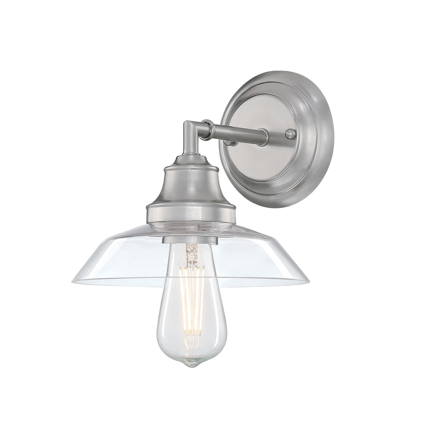 Westinghouse 6129100 Iron Hill Vintage-Style One Light Wall Fixture, Brushed Nickel Finish, Clear Glass