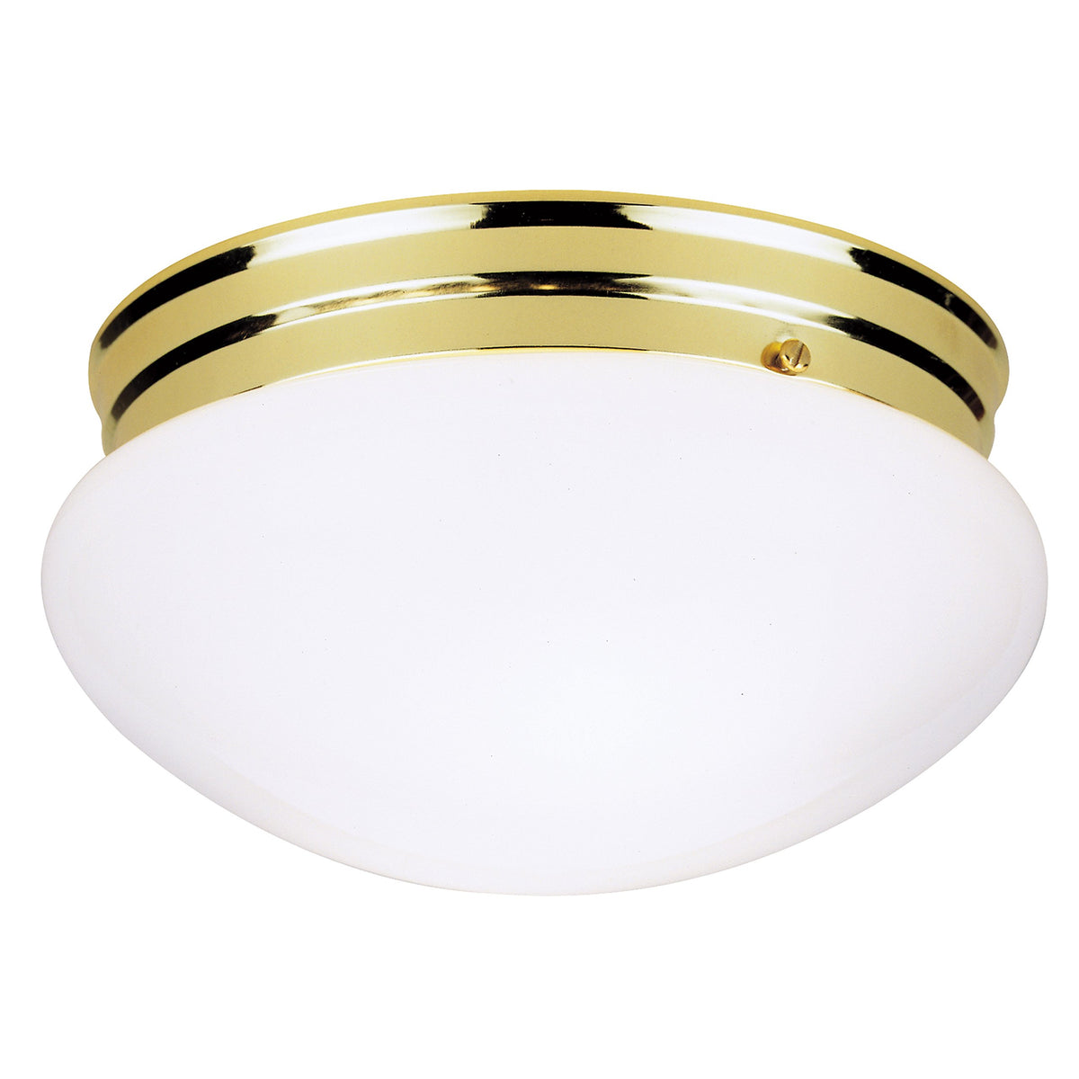 2 Light Ceiling Fixture Polished Brass Finish White Globe With 8 Fitter Diameter 9-1/2 Height 5-1/8 Uses 2 Bulbs 60W Maximum.