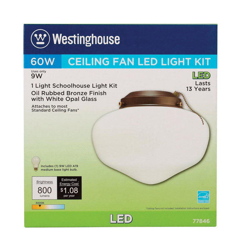 Westinghouse Led Schoolhouse Ceiling Fan Light Kit, Oil Rubbed Bronze, White Opal Glass