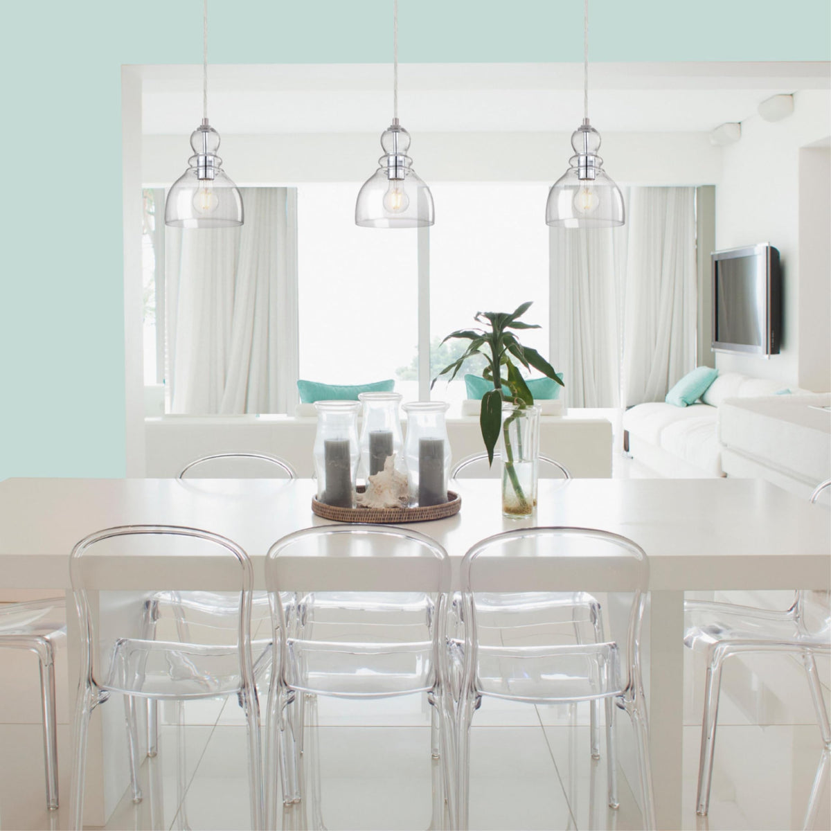 Q: What are the dimensions of the Westinghouse Mini Pendant Light?A: The Westinghouse Mini Pendant Light has a height of 60 inches and a diameter of 7 inches. It also features a maximum cord length of 50 inches, allowing for flexible installation in various spaces.