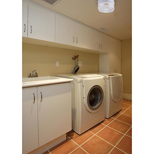 Designed for versatility, the flush-mount construction makes it suitable for both low and high ceilings, making it a perfect choice for kitchens, closets, and laundry rooms. The fixture measures 5-1/4 inches high and 8-3/4 inches in diameter, fitting seamlessly into various spaces. It accommodates two medium-base light bulbs with a maximum wattage of 60 watts (bulbs not included), ensuring bright and efficient lighting for any environment. Additionally, this fixture is Underwriters Laboratories (UL) listed for safety, providing peace of mind in your home or workplace.
