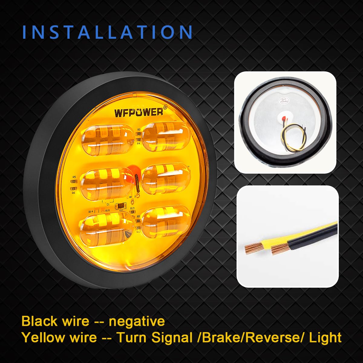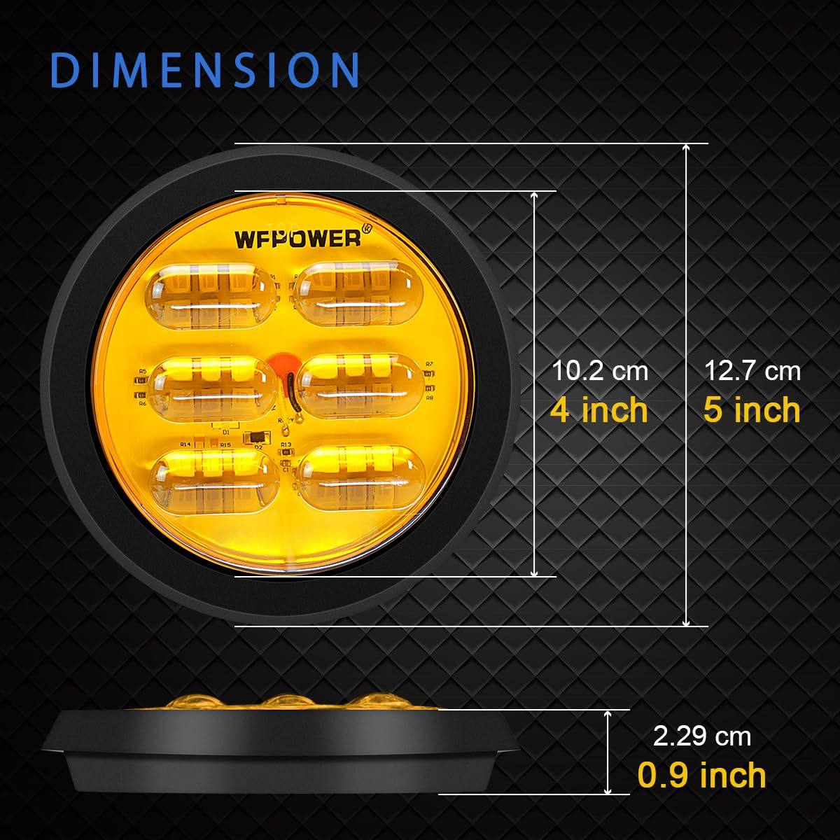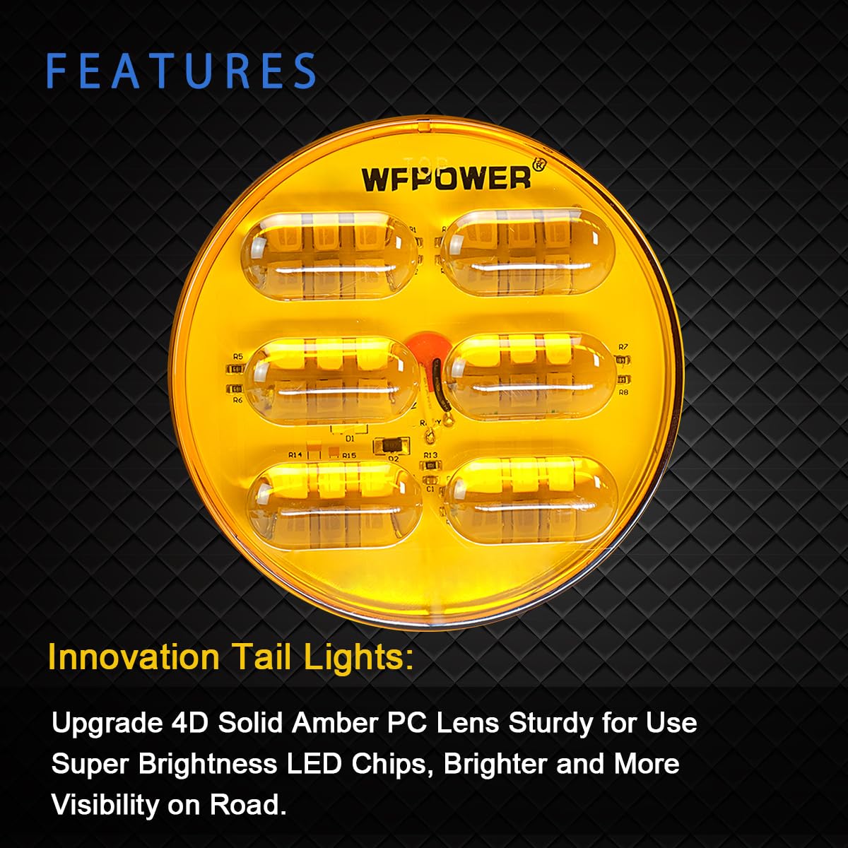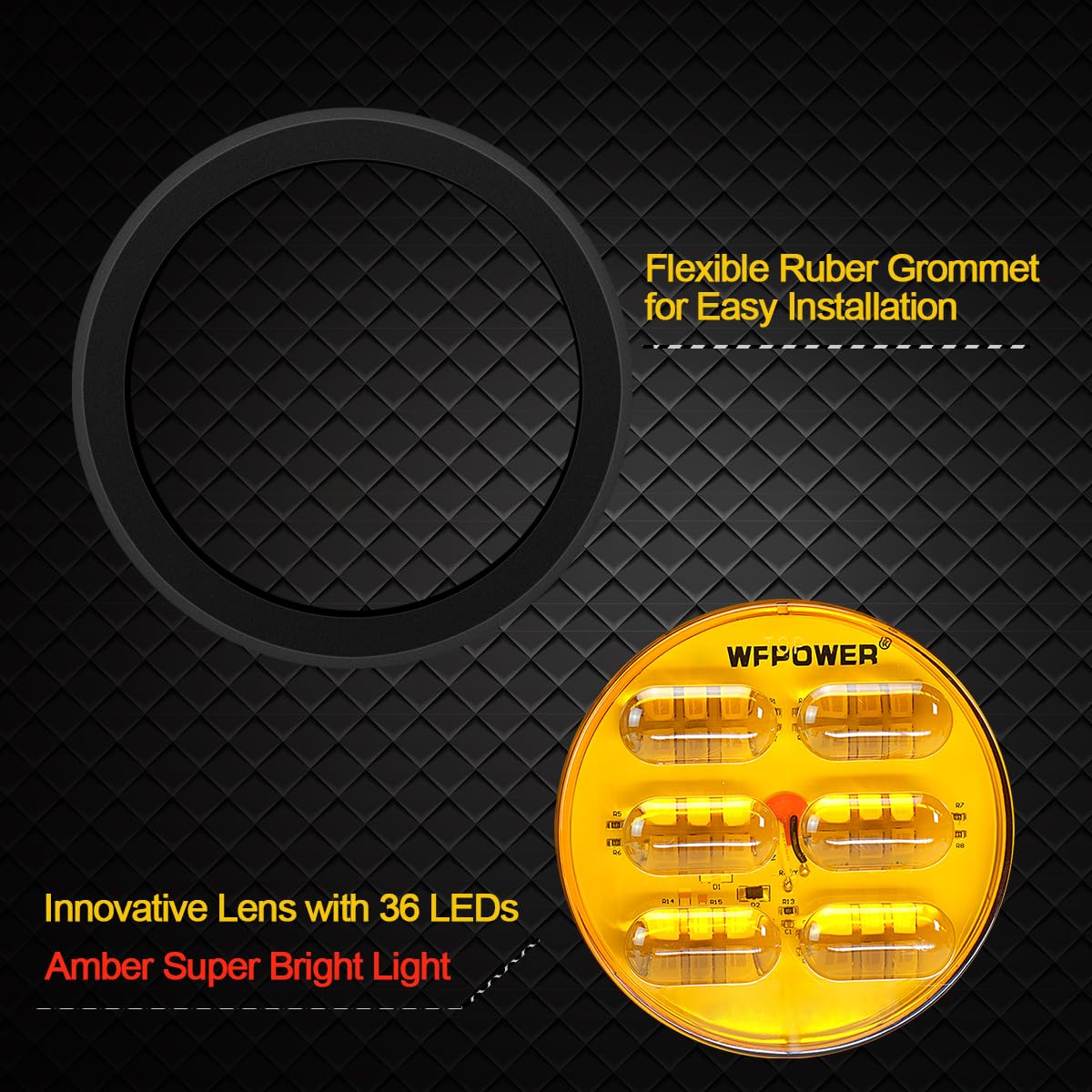 Wfpower 2Pcs 4'' Round Amber Tail Lights, 36 Led Ip67 Waterproof Trailer Lights Turn Signal Light Reverse Backup Flush Mount Tra