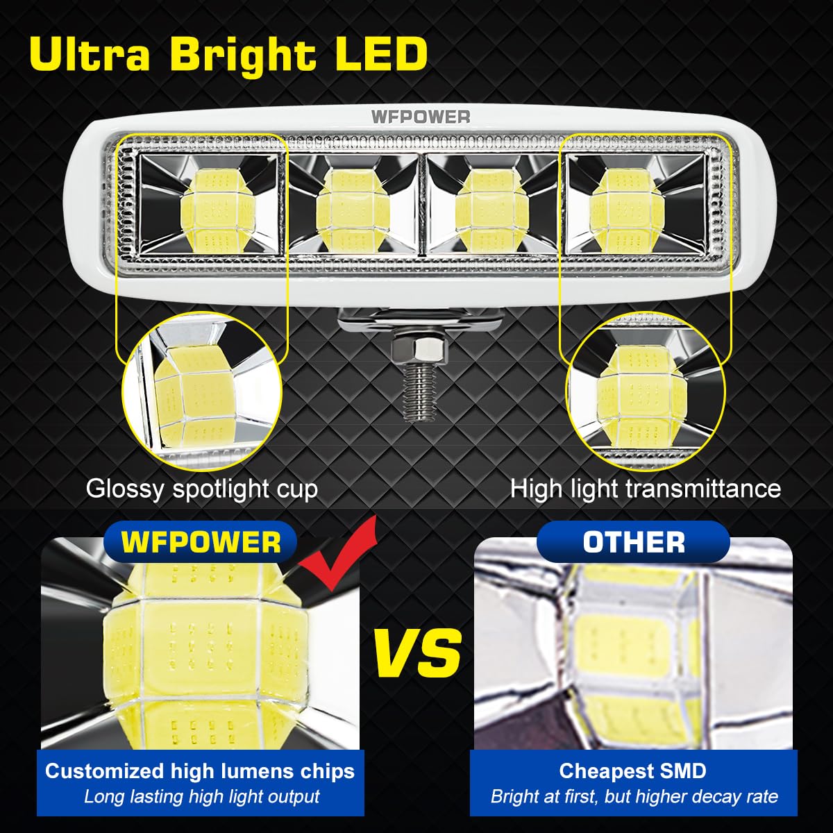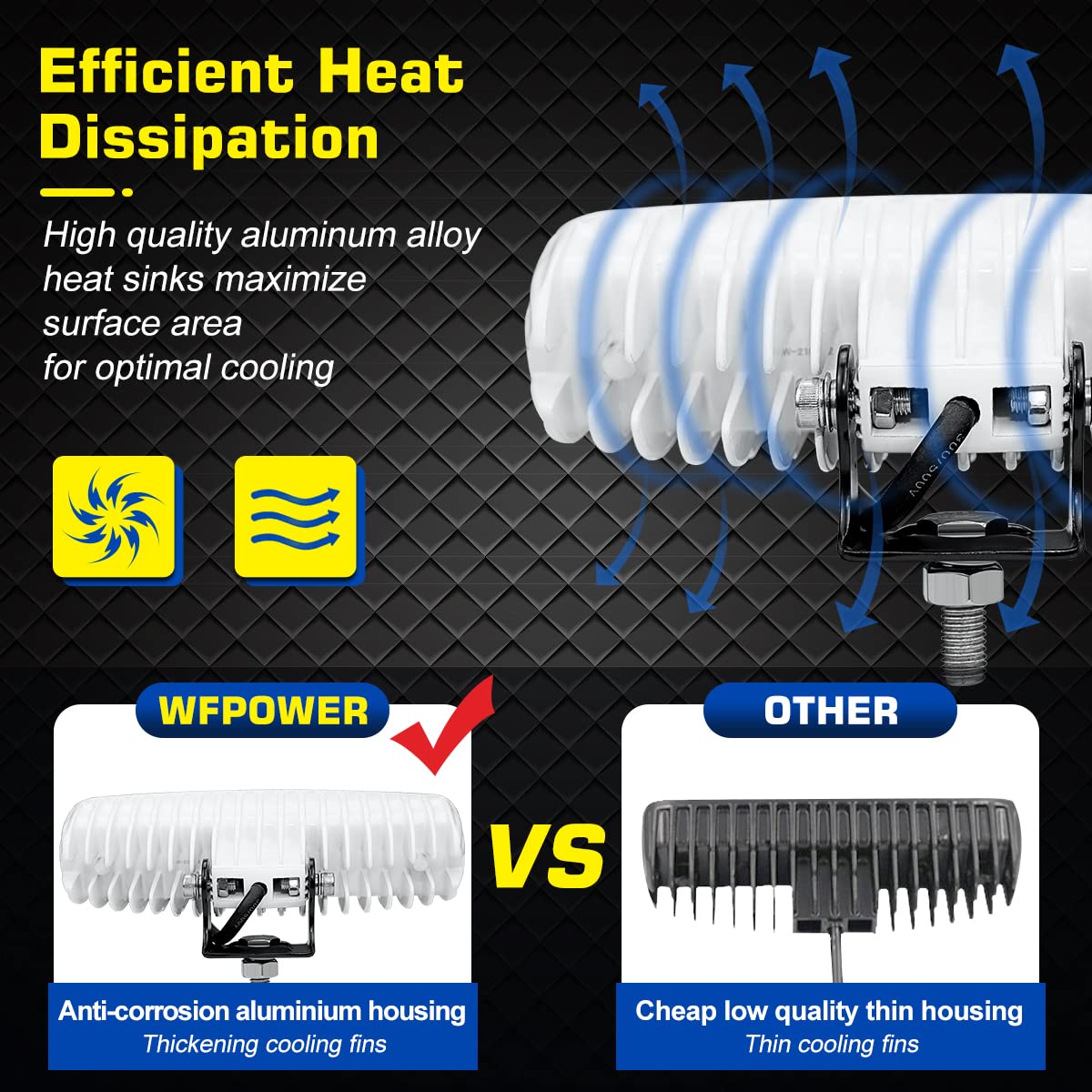 Q: What applications are suitable for these spreader lights?A: The WFPOWER LED Spreader Lights are versatile and can be used for various applications including marine deck lighting, off-road vehicles, and outdoor workspaces, providing reliable illumination wherever needed.