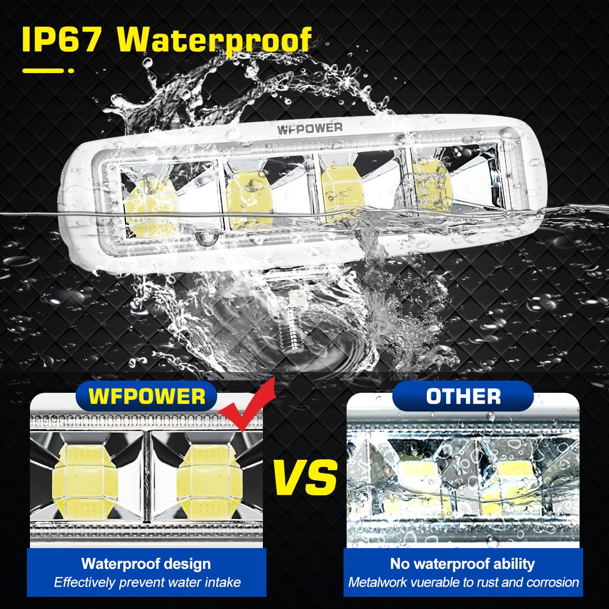 Q: Are these LED lights waterproof for marine use?A: Yes, the WFPOWER LED Spreader Lights have an IP67 waterproof rating, making them suitable for harsh marine environments and capable of withstanding extreme weather conditions.