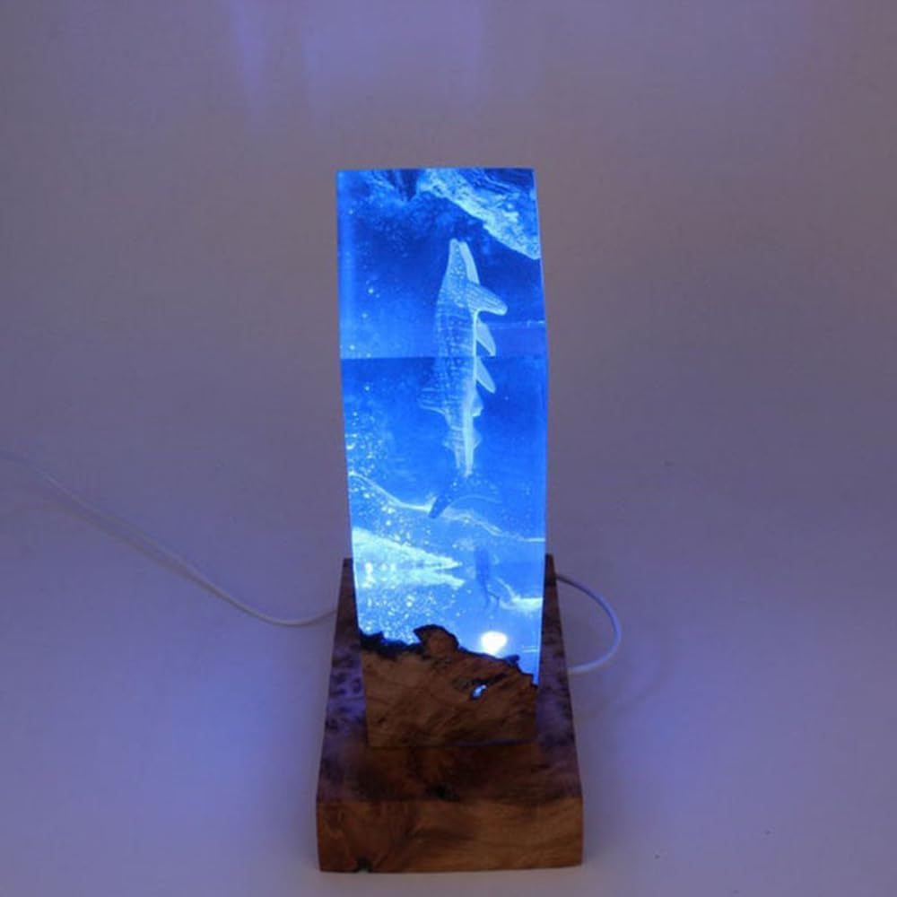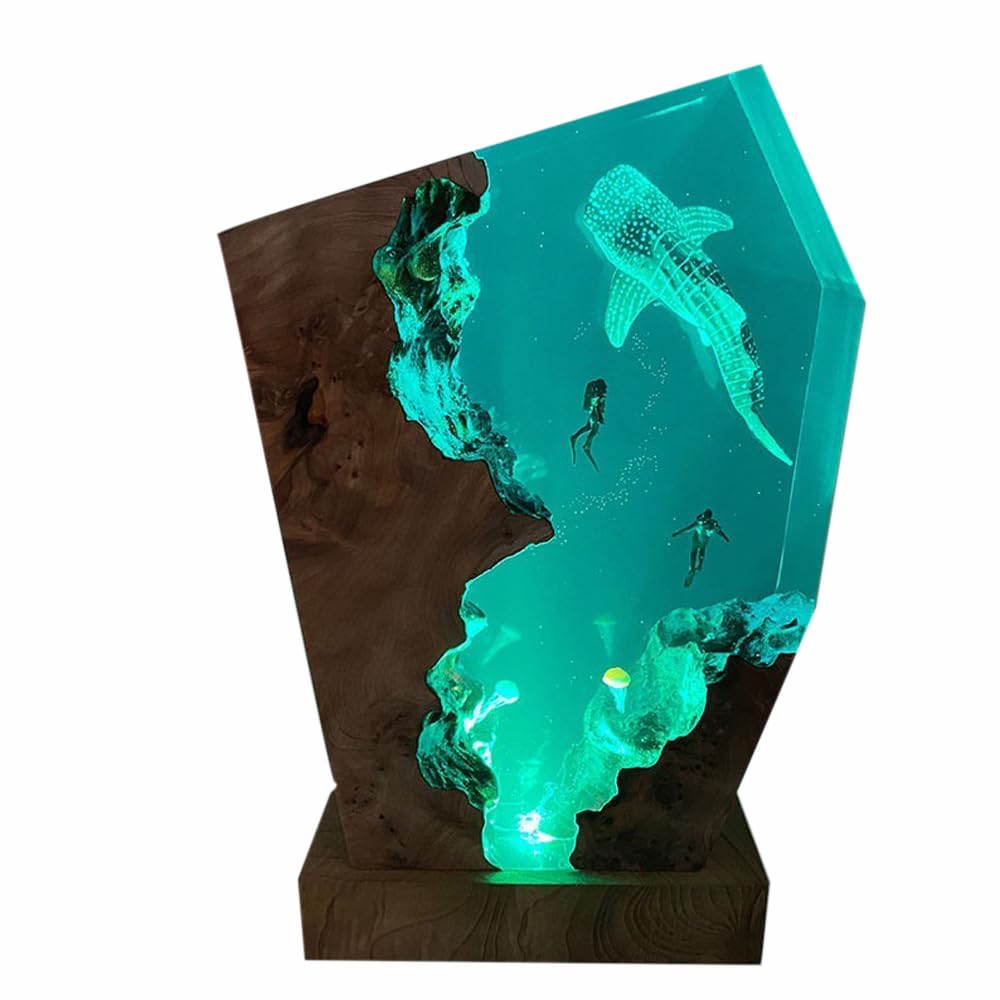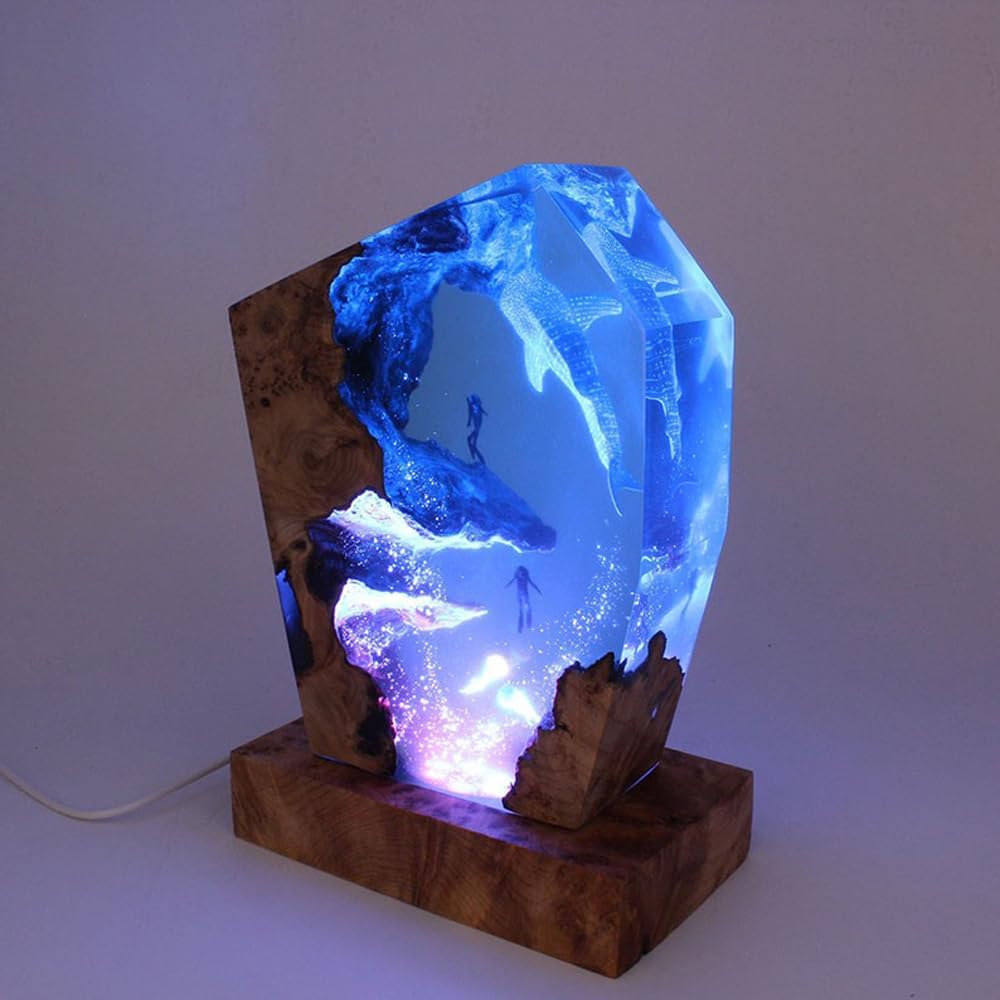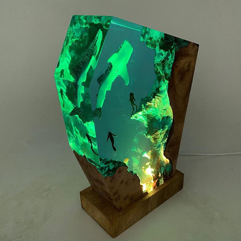 Whale Shark Ocean Resin Lamp Handmade Wooden Table Resin Night Light Usb Port Art Ornaments For Home Office Decor Scuba Diver Gifts For Birthday Holiday ValentineS Day Gifts For Husband