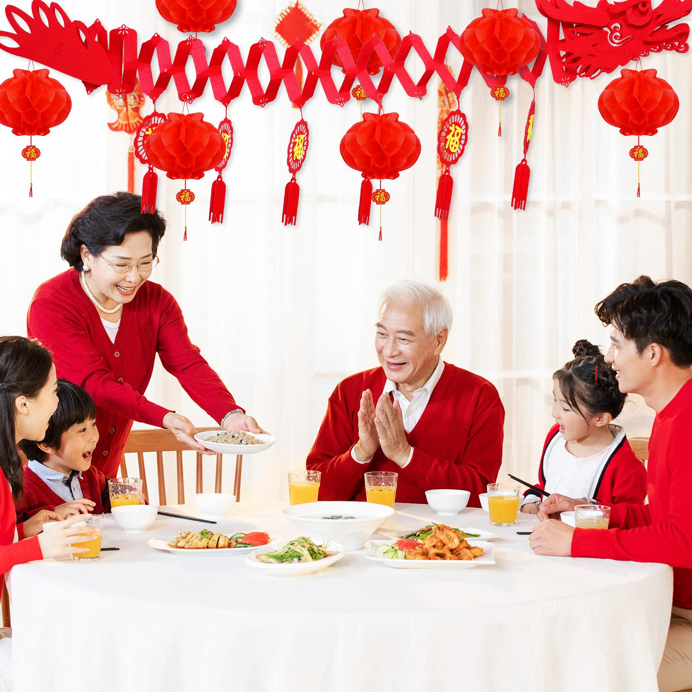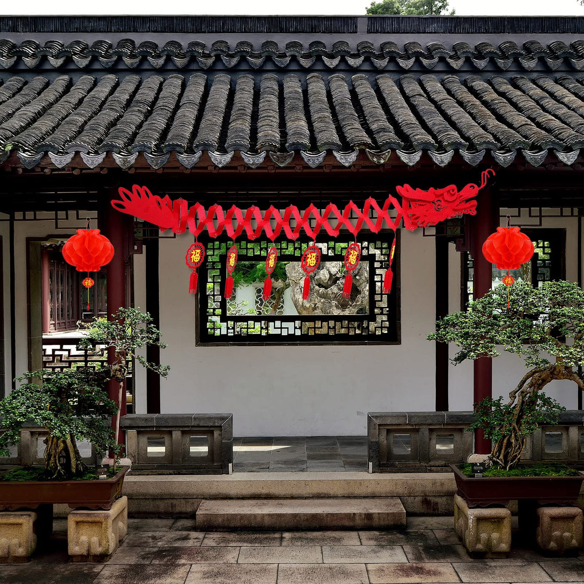 Q: Are the decorations suitable for outdoor use?A: Yes, the red lanterns and Chinese dragon decoration are designed to be durable and can be used for both indoor and outdoor decorations, adding festive cheer to any setting.