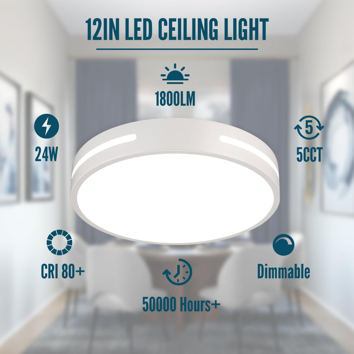 Q: What are the dimensions and power output of the Wheatronic LED Ceiling Light?A: The Wheatronic LED Ceiling Light has a diameter of 12 inches and a power output of 24W, providing a bright illumination of up to 1800 Lumens, making it suitable for various indoor spaces.