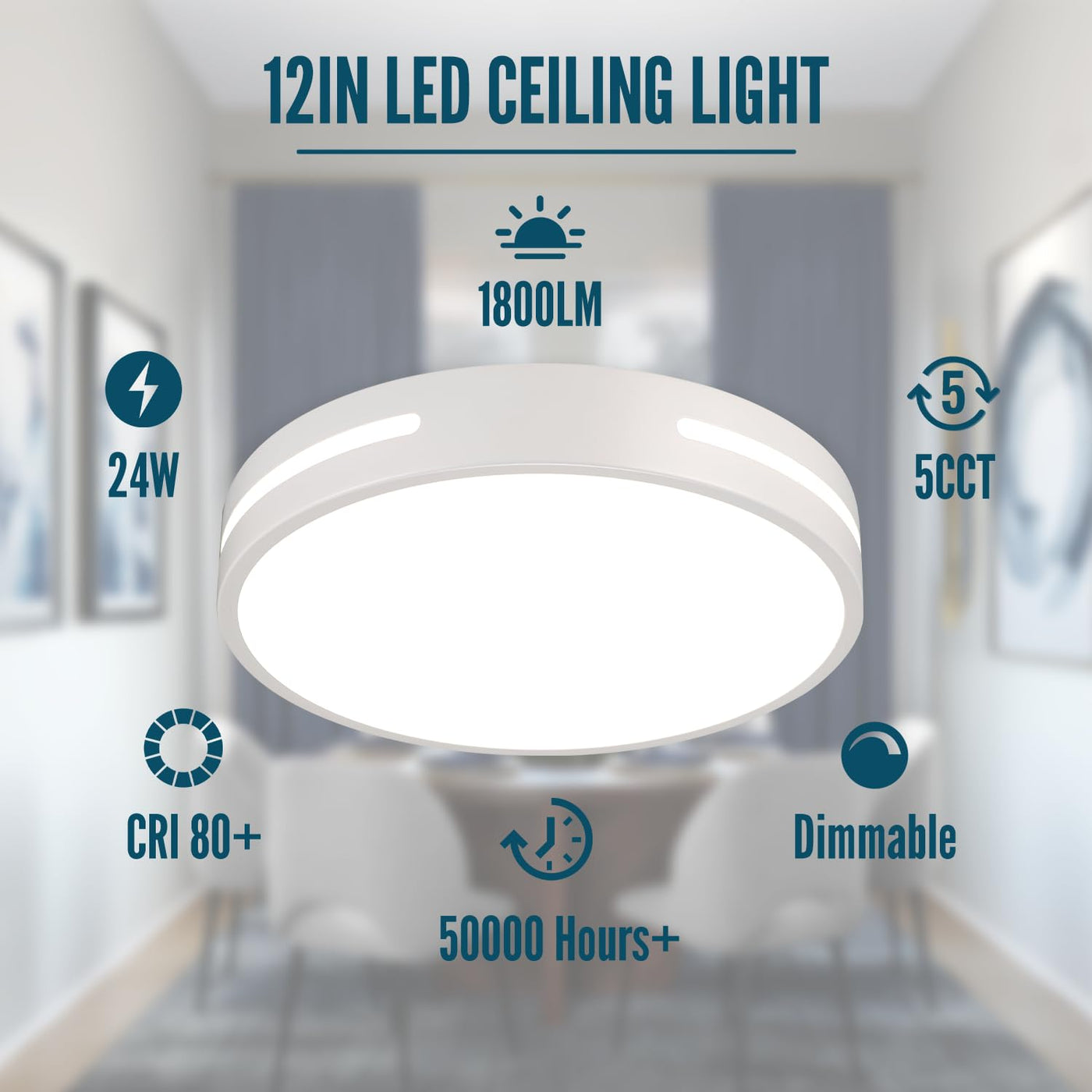 Wheatronic Led Ceiling Light Flush Mount 24W, White Bedroom Light Fixture Ceiling Mount Dimmable 2 Pack, 12 Inch Close To Ceiling Light Fixture 5Cct For Kitchen, Bathroom, Living Room