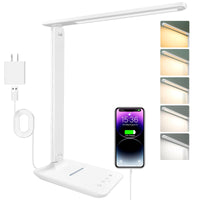 White Crown Led Desk Lamp With 15W Wireless Charger & Usb Port, Dimmable Table Lamp With 5 Lighting Modes, Sensitive Touch Contr