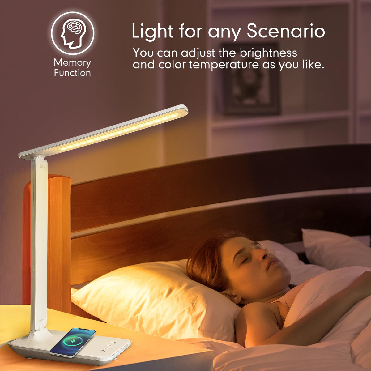 Eye-caring desk Lamps White crown desk lamp provides a Gentle, natural light protects your eyes New improved version LED desk lamp, more solid materials, 52 full-spectrum lamp beads, light more gentle, more uniform lighting,Designed for reading, studying, and working. ?1?A stylish and minimalist design that is perfect for the home or the office. ?2?Sliding touch dimming, the light intensity can be adjusted freely ?3?Soft light panel to meet different environmental use ?4?Fully Rotatable can be freely bent to adopt different angles ?5?The LED light source saves energy and has a life of up to 50000 hours ?6?Can be used with the USB charger, mobile power, computer USB port ?7?30 / 60min auto power-off function designed for reading before bed Product specification Maximum power: 6W light source: 52PCS SMD2835 Rated voltage: DC5V1-2A Luminous flux:500 Lm Color index: Ra>80 Material: aluminum, iron, plastic (ABS)